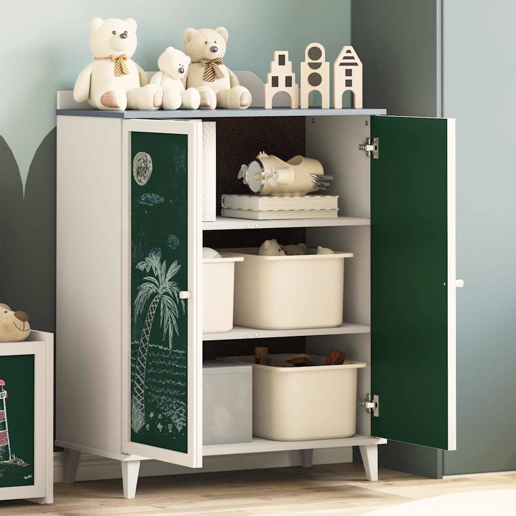 Questa credenza moderna con lavagna unisce funzionalità e stile, rendendola perfetta per ogni cameretta o soggiorno. La sua forma rettangolare e il look elegante danno un tocco contemporaneo, con la cornice in legno ingegnerizzato bianco e porte verdi vivaci. È ideale sia per riporre che per esprimere la tua creatività, visto che funge anche da lavagna per scoprire note o lasciare messaggi.