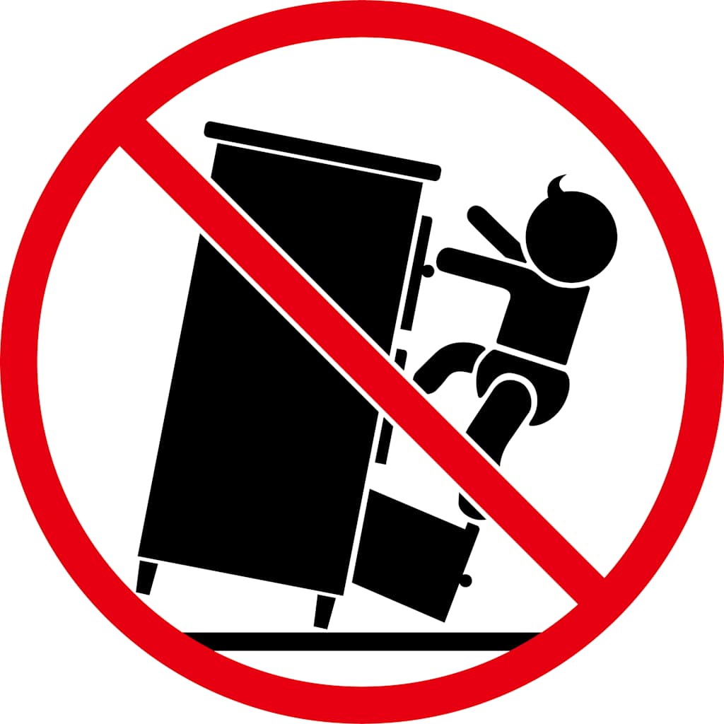 - Per evitare il ribaltamento, questo prodotto deve essere utilizzato con il dispositivo di fissaggio a parete incluso.