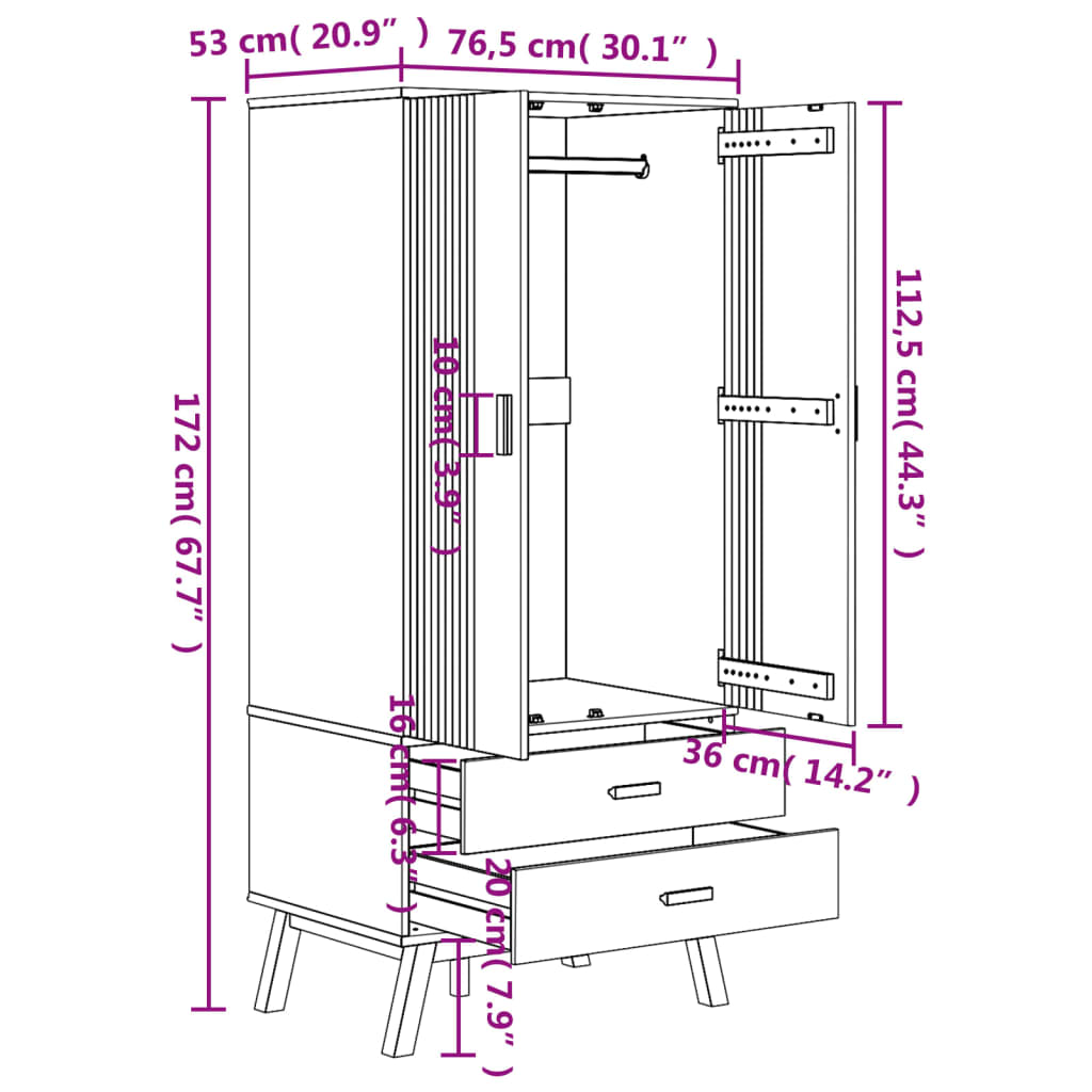 Armadio OLDEN Bianco e Marrone 76,5x53x172 cm Massello di Pino 358596