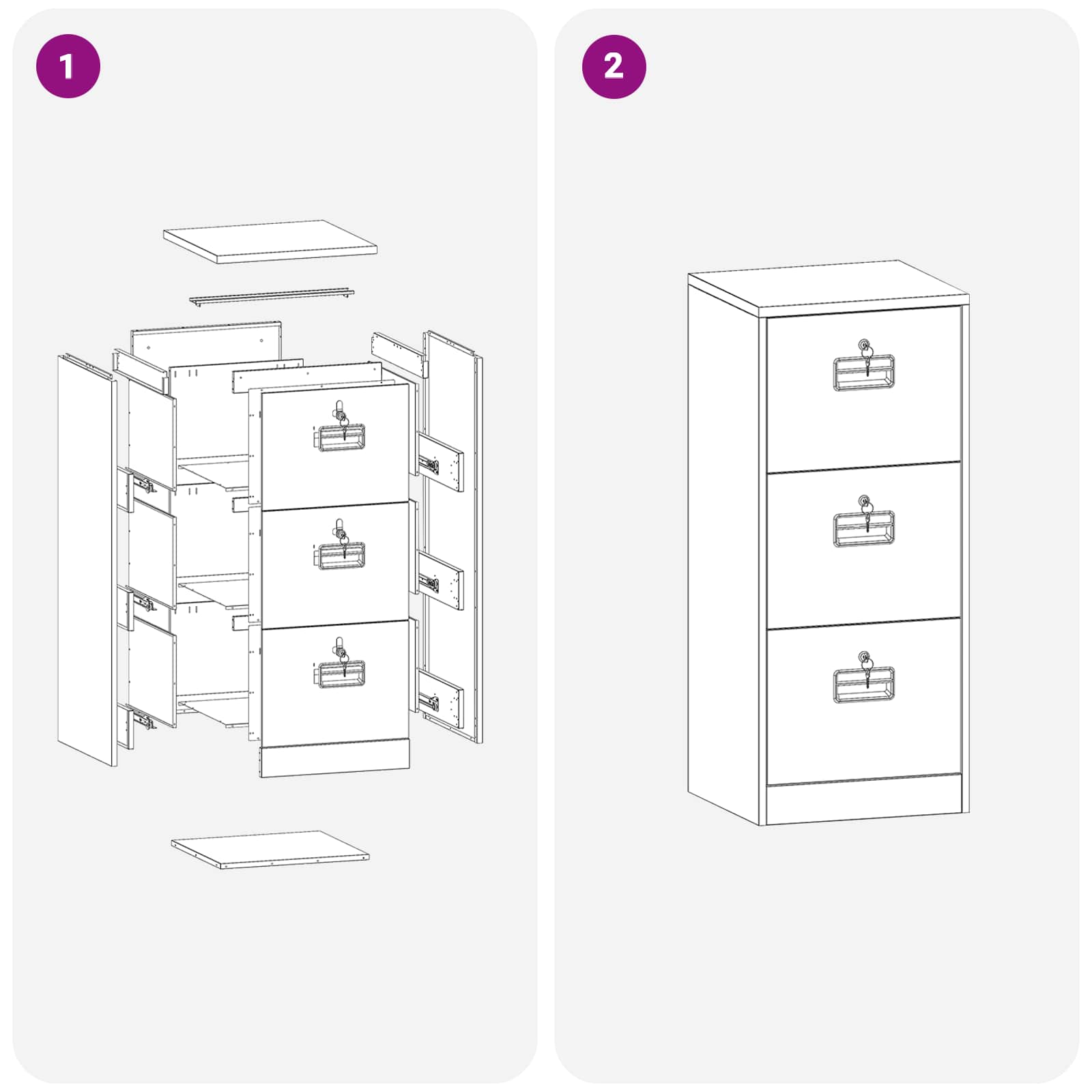 - Serrature a camme sicure Le serrature a camme rendono questo armadio molto sicuro. Ogni cassetto è bloccato in modo sicuro, così il contenuto rimane protetto da accessi non autorizzati. È una caratteristica fondamentale per gli uffici che gestiscono documenti delicati, offrendo tranquillità a chiunque lo usi.