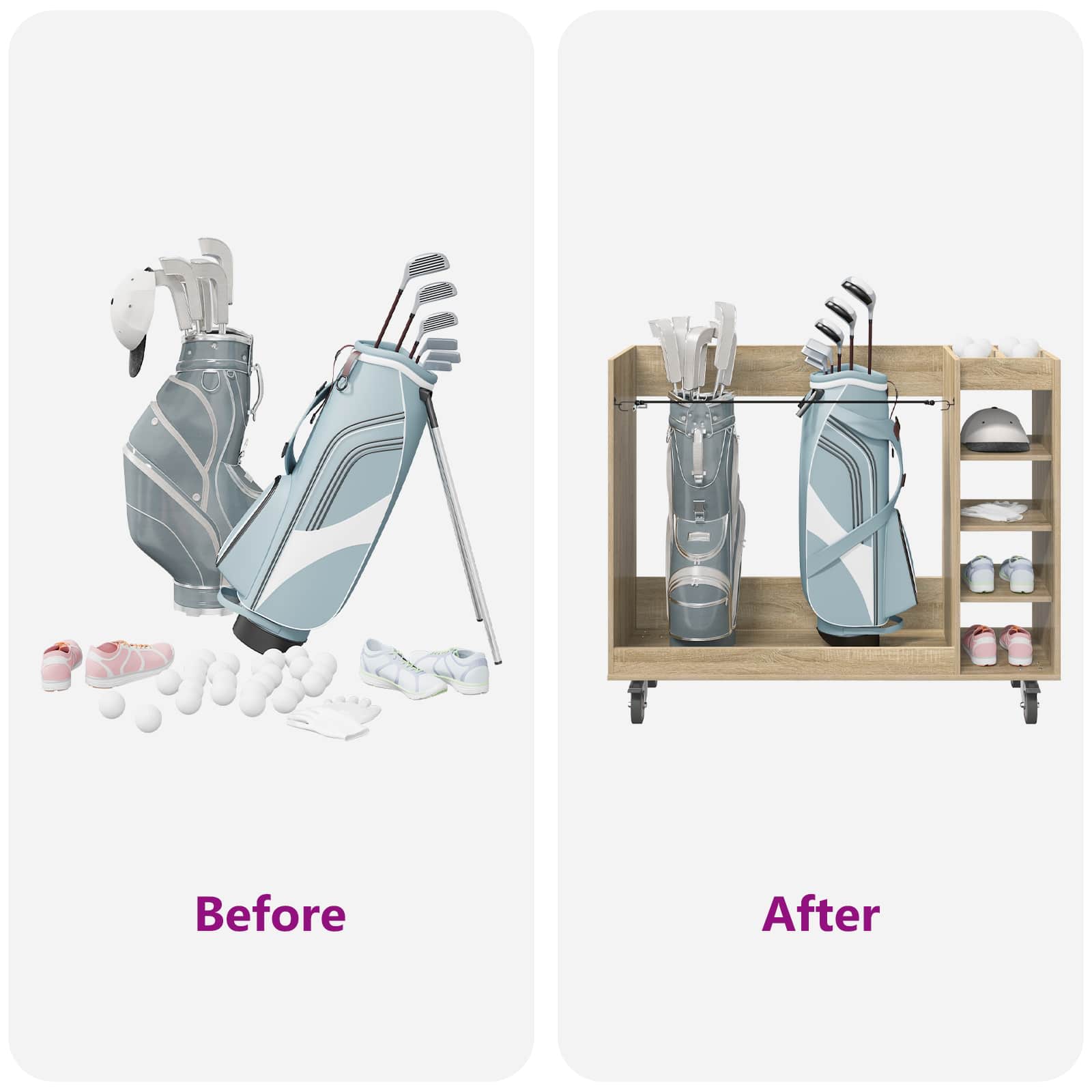 - Caratteristiche /Funzione /Design: Progettato per ampi spazi di stoccaggio, ha diversi ripiani per organizzare accessori da golf e altro. Il design opaco mantiene i contenuti nascosti, mentre lo stile moderno si adatta a vari tipi di arredamento. È funzionale per mantenere ordine e mostrare un buon gusto.
