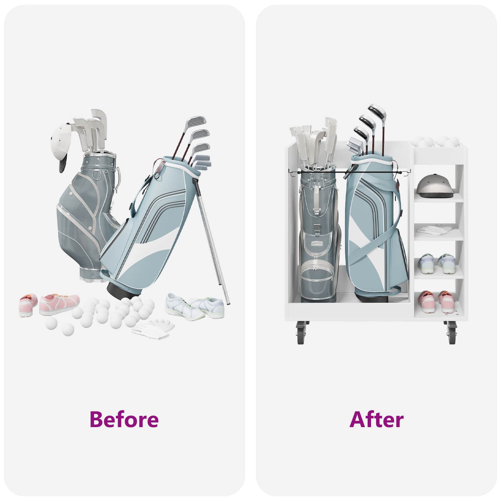 - Caratteristiche /Funzione /Design: Progettato per ampi spazi di stoccaggio, ha diversi ripiani per organizzare accessori da golf e altro. Il design opaco mantiene i contenuti nascosti, mentre lo stile moderno si adatta a vari tipi di arredamento. È funzionale per mantenere ordine e mostrare un buon gusto.