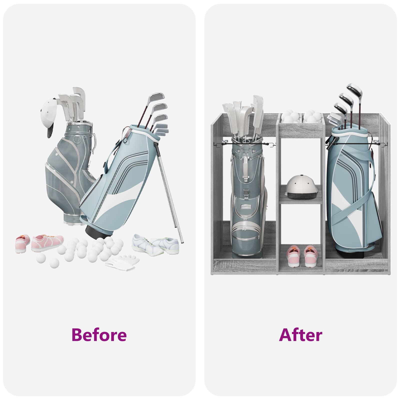 - Caratteristiche /Funzione /Design: Progettato per ampi spazi di stoccaggio, ha diversi ripiani per organizzare accessori da golf e altro. Il design opaco mantiene i contenuti nascosti, mentre lo stile moderno si adatta a vari tipi di arredamento. È funzionale per mantenere ordine e mostrare un buon gusto.