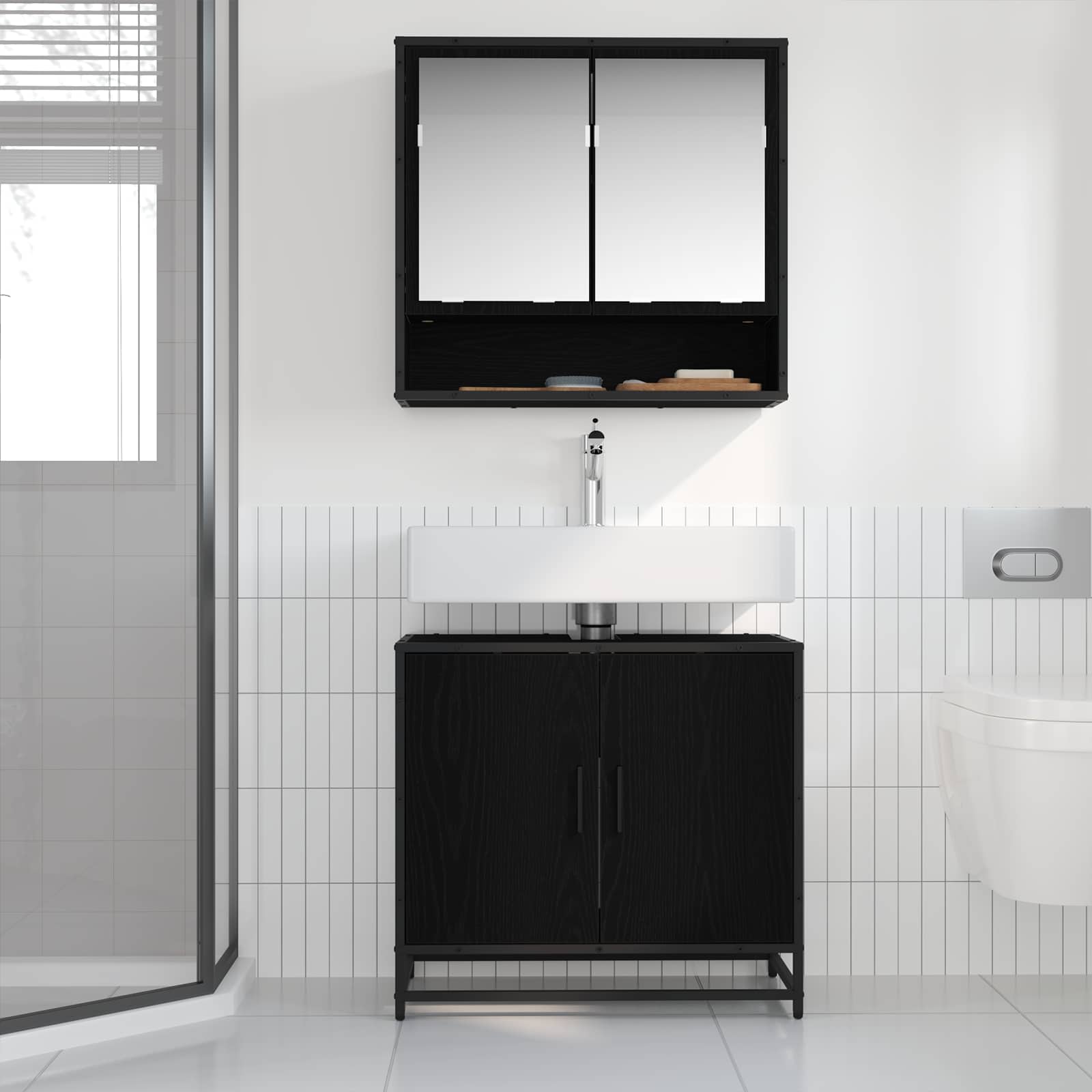 Armadio per Lavabo da Bagno Rovere Nero 65 x 33 x 60 cm 883616