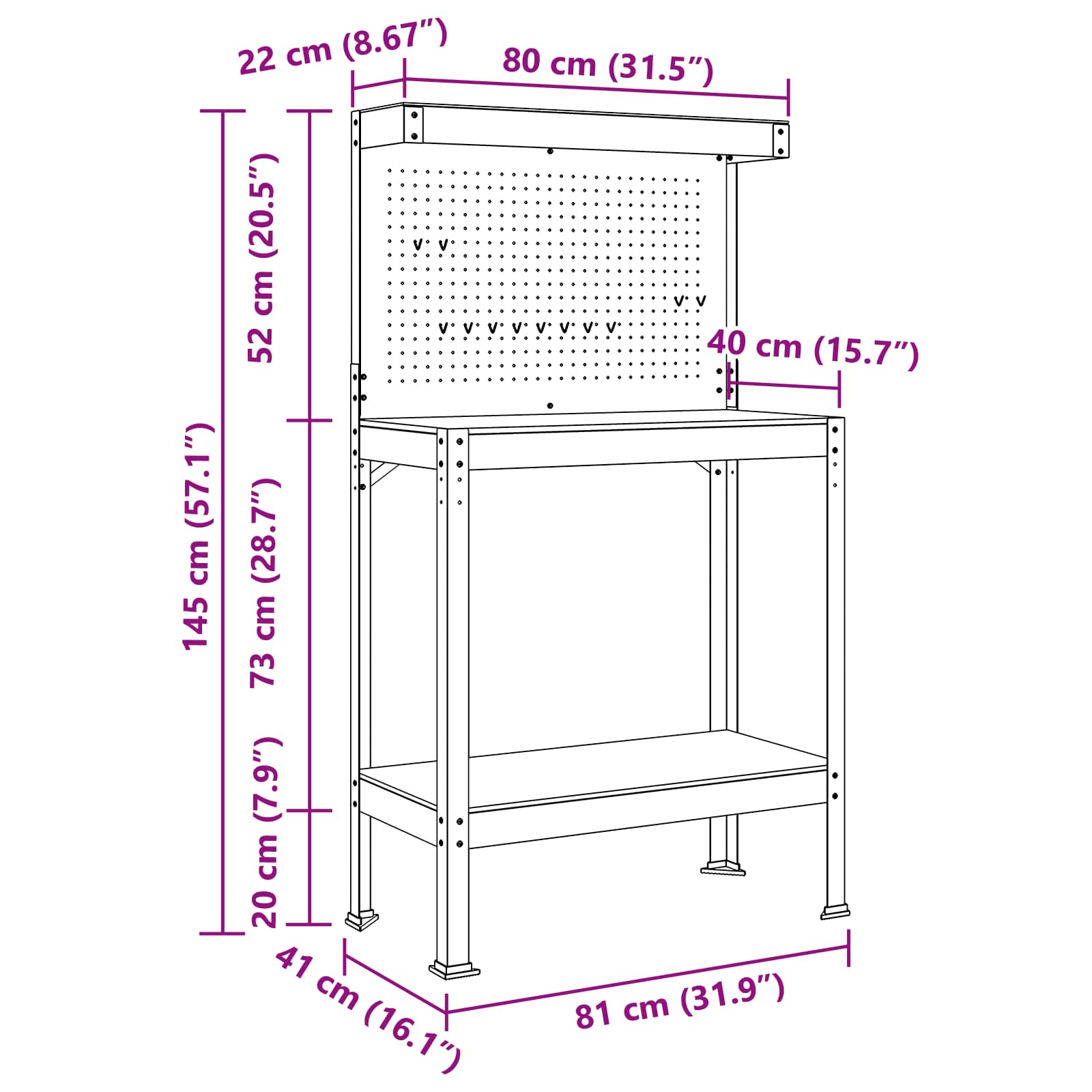 - 1 x Banco da lavoro con cassetto e pannello forato
