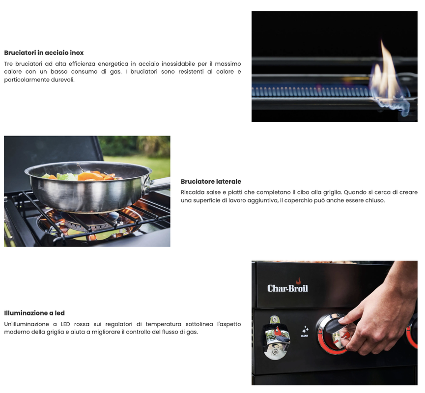 Char-Broil è amato sia da professionisti che da appassionati del barbecue. poiché offre soluzioni che combinano praticità. stile e prestazioni eccezionali. Questo impegno costante verso l'eccellenza ha reso Char-Broil sinonimo di fiducia e affidabilità nel mondo della griglia.