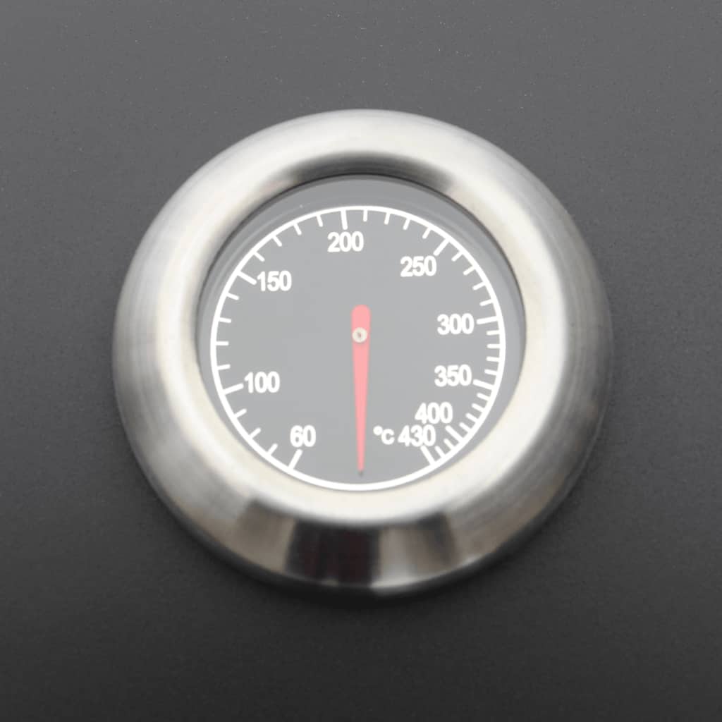 Questa griglia a gas ha un design elegante e funzionale. Ha una grande superficie di cottura e un coperchio resistente con un termometro integrato che mostra accuratamente la temperatura di cottura. Una mensola laterale offre uno spazio di lavoro addizionale per fare delle salse o i vostri contorni preferiti. Il contenitore dove si accumula il grasso è removibile, per una facile pulizia.