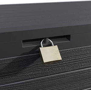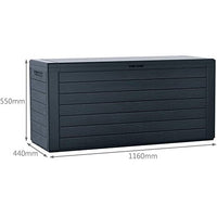 - Le dimensioni del grande baule da giardino sono: 116 x 44 x 55 cm, Capacità: 280 Litri, Stampa 3D Effetto Legno