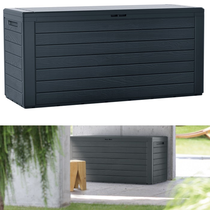 Baule da Giardino Impermeabile, Contenitore da Esterno con Maniglie, 280 L, Effetto Legno, Antracite