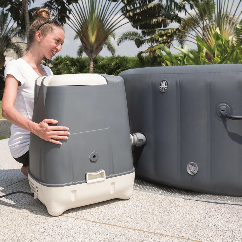 Questa vasca idromassaggio ha una funzione di riscaldamento automatico con avviamento e spegnimento controllato da timer e ha caratteristiche termoisolanti eccellenti per mantenere l'acqua calda. Grazie al sistema di depurazione ClearSoft e al sistema integrato di filtraggio dell'acqua, la vasca avrà sempre acqua pulita. Si può godere di una temperatura dell'acqua fino a 40°C. Le pareti gonfiabili, realizzate in materiali TriTech, garantiscono durata e comfort. La vasca può essere gonfiata e sgonfiata rapidamente con la pompa in dotazione. Può essere facilmente ripiegata per essere conservata o trasportata quando non è in uso. Questa spa gonfiabile presenta un sistema di massaggio idrodinamico con 8 idrogetti regolabili e trasformerà istantaneamente il vostro cortile in un lussuoso resort.
