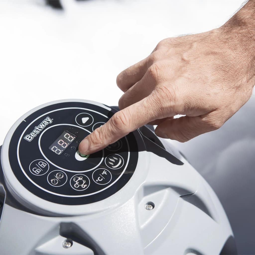Questa vasca idromassaggio gonfiabile ha una funzione di riscaldamento automatico con avviamento e spegnimento controllato da timer e ha caratteristiche termoisolanti eccellenti per mantenere l'acqua calda. Grazie al sistema di distribuzione ChemConnect e al sistema integrato di filtraggio dell'acqua, la vasca avrà sempre acqua pulita. Si può godere di una temperatura dell'acqua fino a 40°C. Le pareti gonfiabili, realizzate in materiali Tritech, garantiscono durata e comfort. La vasca può essere gonfiata e sgonfiata rapidamente con la pompa in dotazione. Inoltre, può essere facilmente ripiegata per essere conservata o trasportata quando non è in uso. Il sistema idromassaggio Air Jet vi farà immergere in una vasca di bolle, trasformando istantaneamente il vostro giardino in un lussuoso resort. In aggiunta, la copertura rinforzata con clip di bloccaggio preserva a lungo la temperatura dell'acqua.