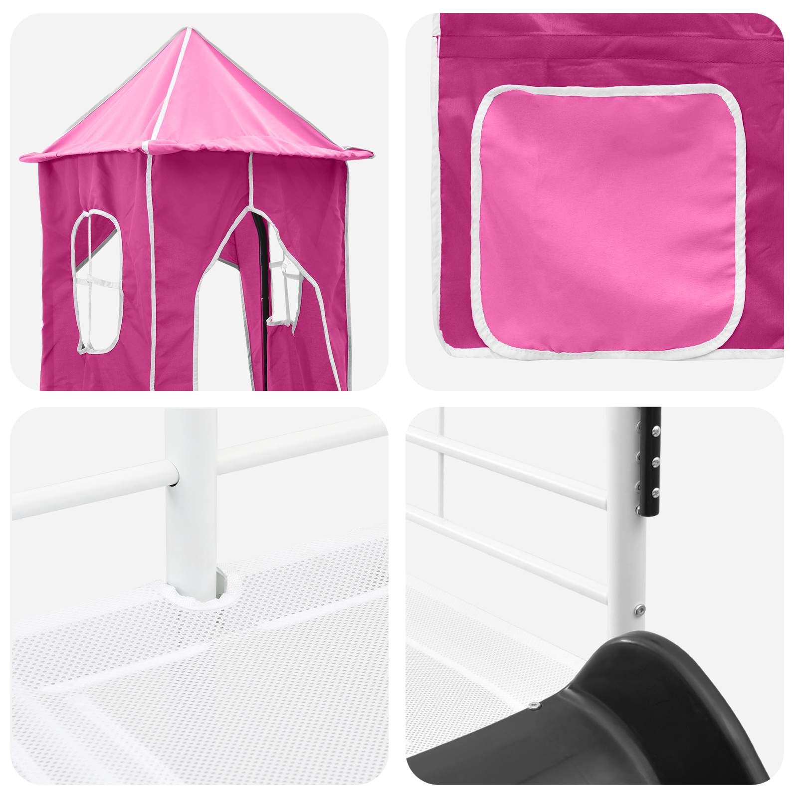 Questa struttura letto a soppalco moderna per bimbi, con tende, arco, scivolo e torre, è una soluzione pratica e divertente per le camerette. È un design fresco e alla moda, un pezzo d'arredo che fa la differenza in qualsiasi stanza. Con la sua torre e il divertente scivolo, rende la notte un momento speciale. Ha un design che sfrutta al meglio lo spazio, perfetta per riflettere lo spirito vivace di un bambino, e offre elementi che stimolano immaginazione e creatività. Il mix di bellezza e funzionalità fa di questo letto un'ottima scelta per spazi dinamici dedicati ai più piccoli.