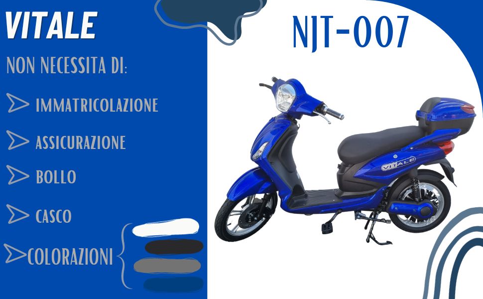 Bici Elettrica Scooter Velocipede Vitale NJT-007 250W 20Ah 48V Batteria a Grafene-Nero