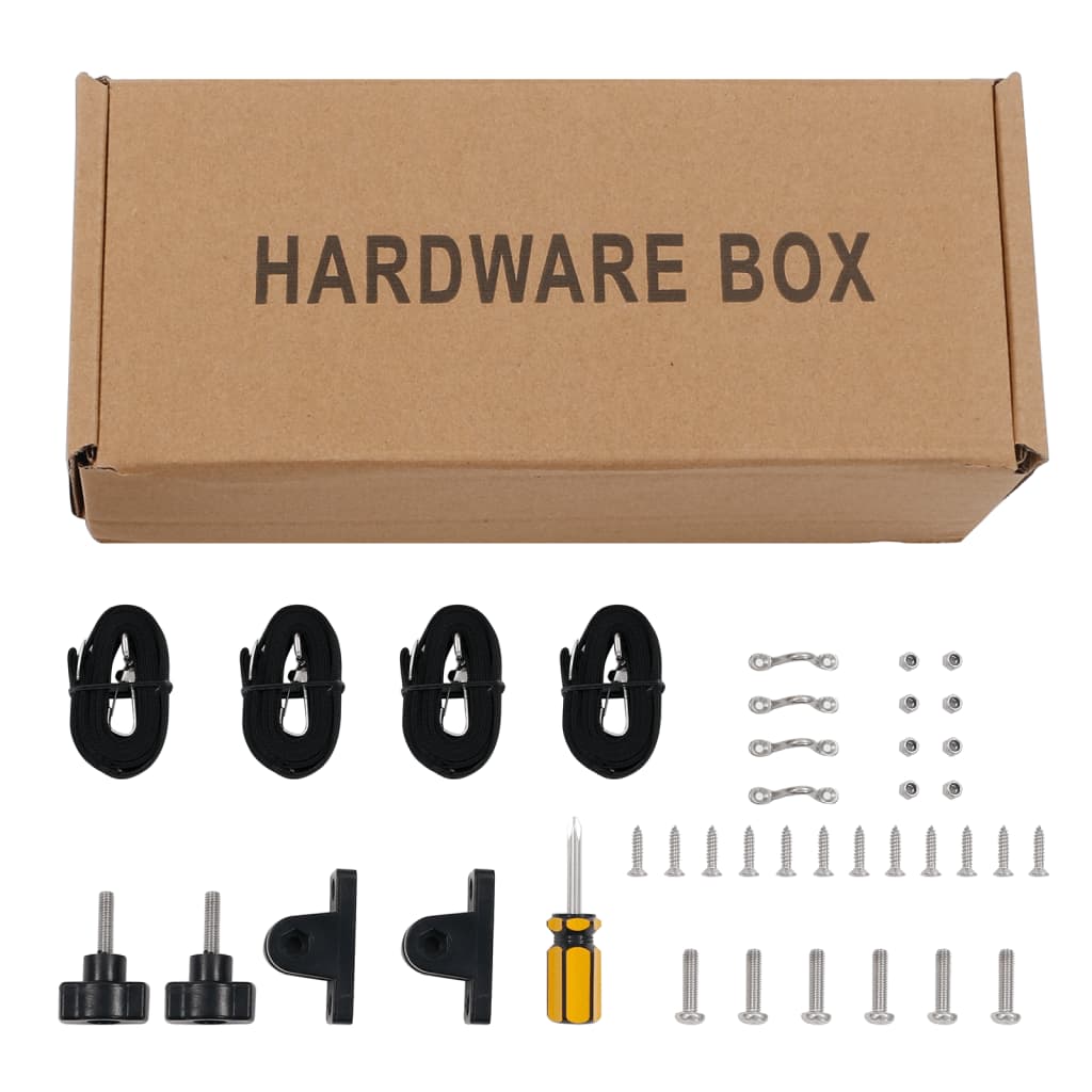 - Di lunga durata: I ganci a occhiello, i dadi di montaggio, e le manopole sono realizzati in acciaio inox 316 di grado marino, che è anticorrosione e particolarmente adatto per un uso a lungo termine.
