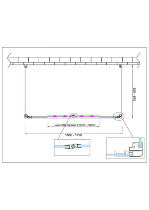 Box doccia 6 mm H 190 parete fissa e porta a 4 ante con apertura centrale MISURA 65-67,5 ANTA FISSA + PORTA 168-173