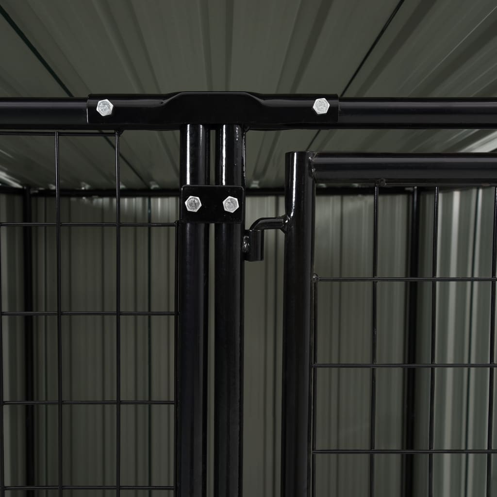 Questo box per cani offre ampio spazio per l'allenamento, mentre le pareti in barre d'acciaio aiutano a prevenire danni e incidenti imprevisti e allo stesso tempo permettono la ventilazione. Grazie alla costruzione in acciaio robusta e resistente, questo canile di alta qualità è durevole e costruito per durare. La porta con cardini a cerniera ha un sistema di chiusura con serratura che garantisce una maggiore sicurezza per i vostri cani.