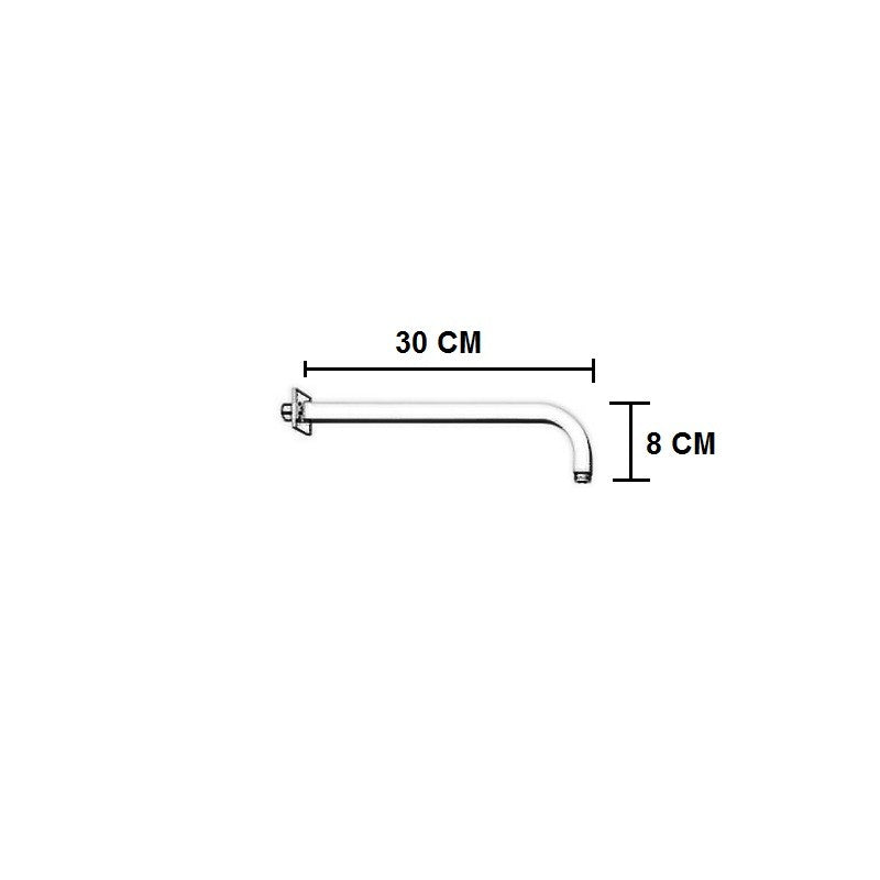 Braccio per soffione doccia da cm 30 dal design squadrato con angolo a raggio.