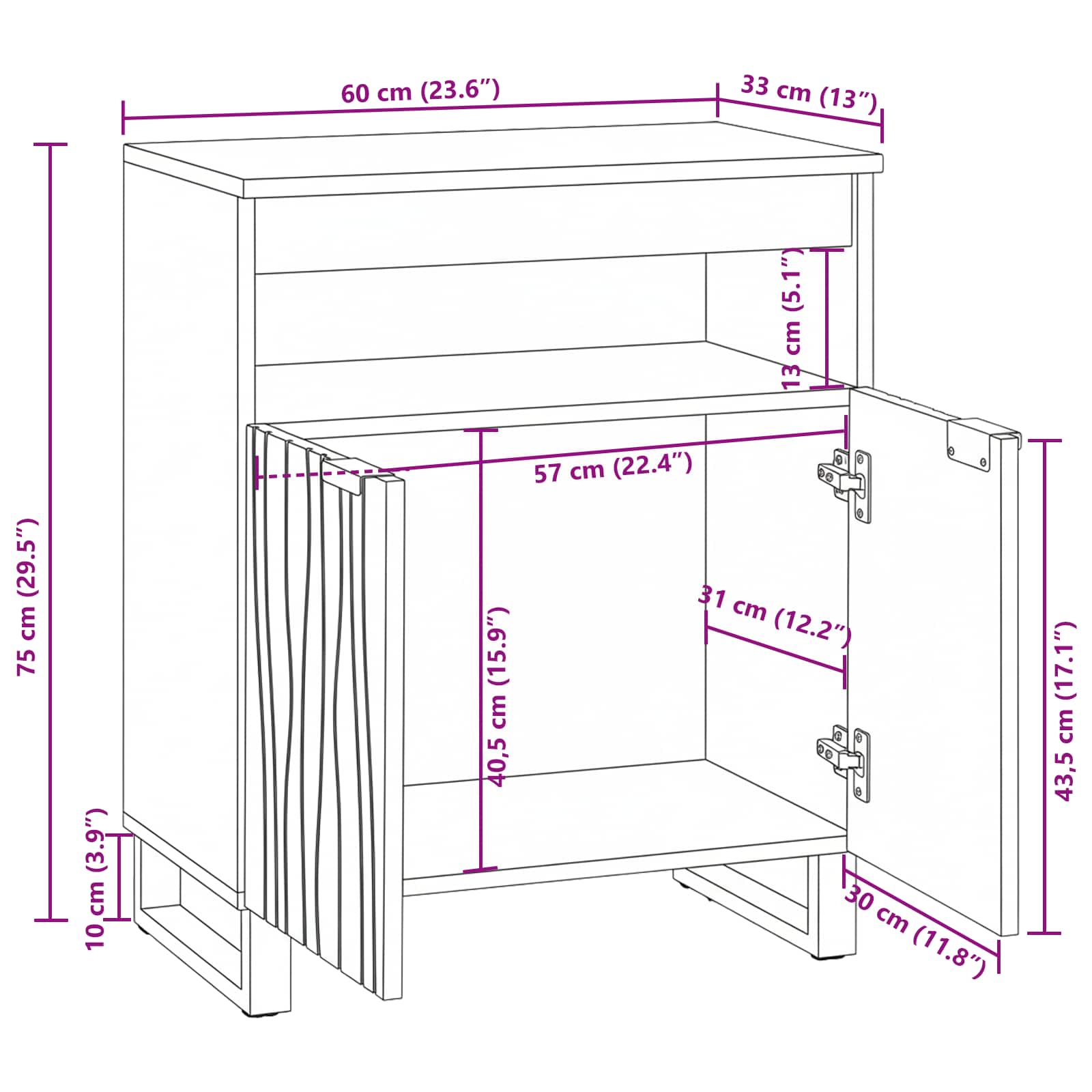 - Dimensioni complessive: 60 x 33 x 75 cm (L x P x A)