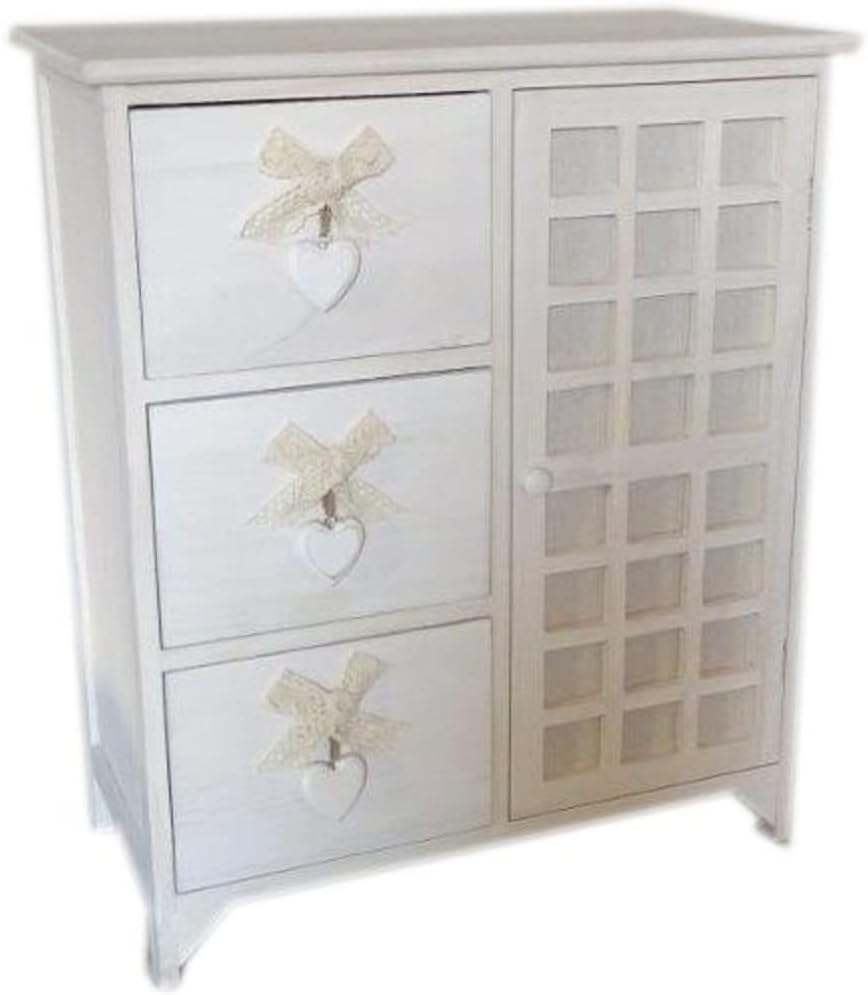 C656121 - CASSETTIERA 3 CASSETTI CON CUORE + ANTA COLORE WHITE WASHED