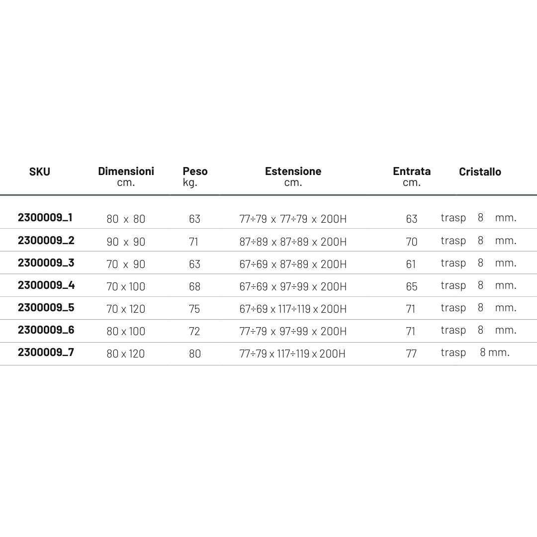 - Il Cristallo temprato Trasparente da 8 mm dona un senso di solidità estrema allo spazio doccia caratterizzando ed esaltando il design della stanza da bagno