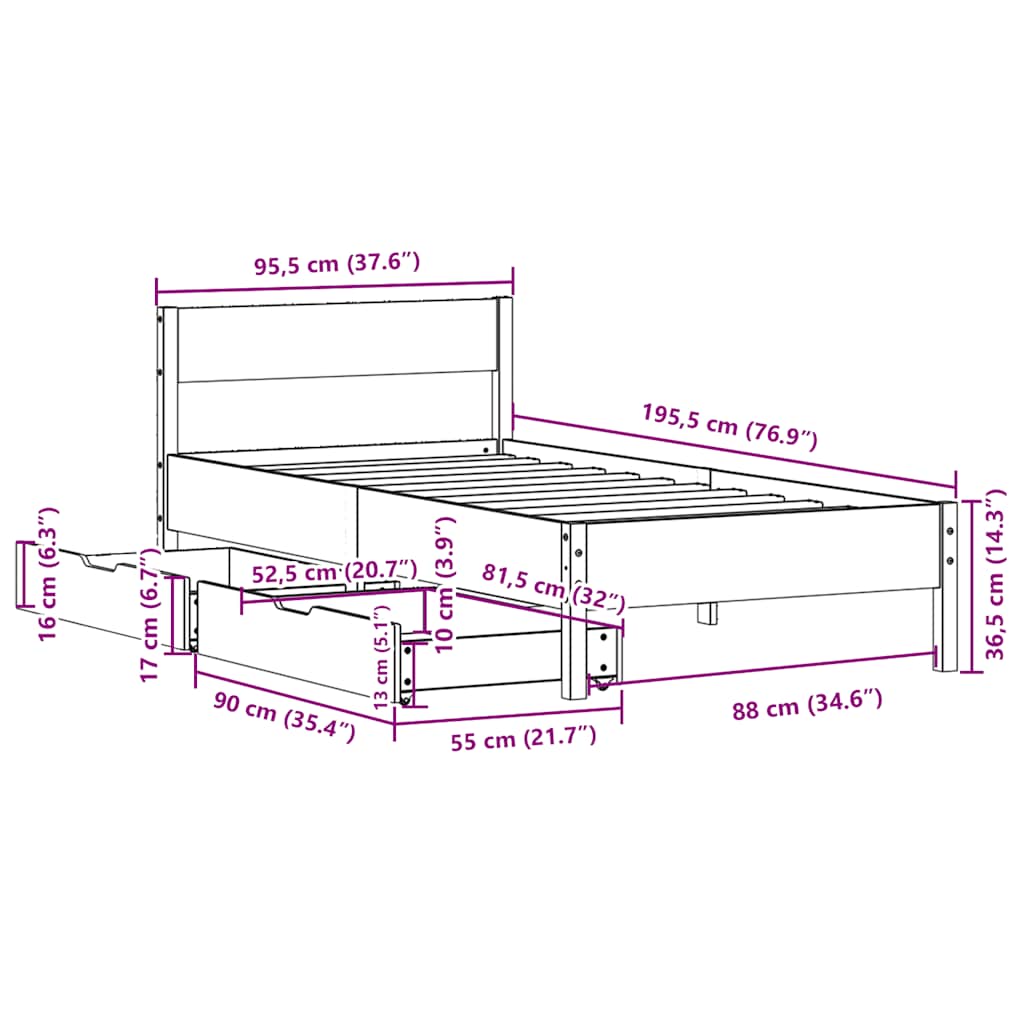 Letto senza Materasso Bianco 90x190 cm in Legno Massello Pino 3301771