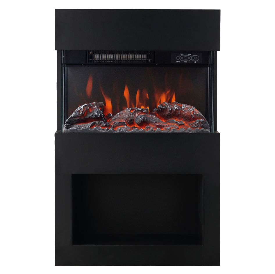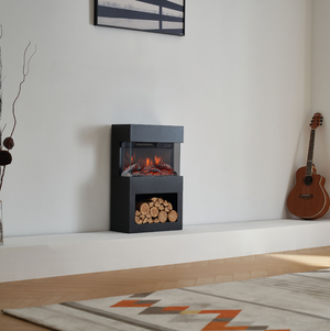 Camino elettrico HENRI - Stufa elettrica con riscaldamento, effetto fiamma 3D, vano portalegna, telecomando - Nero