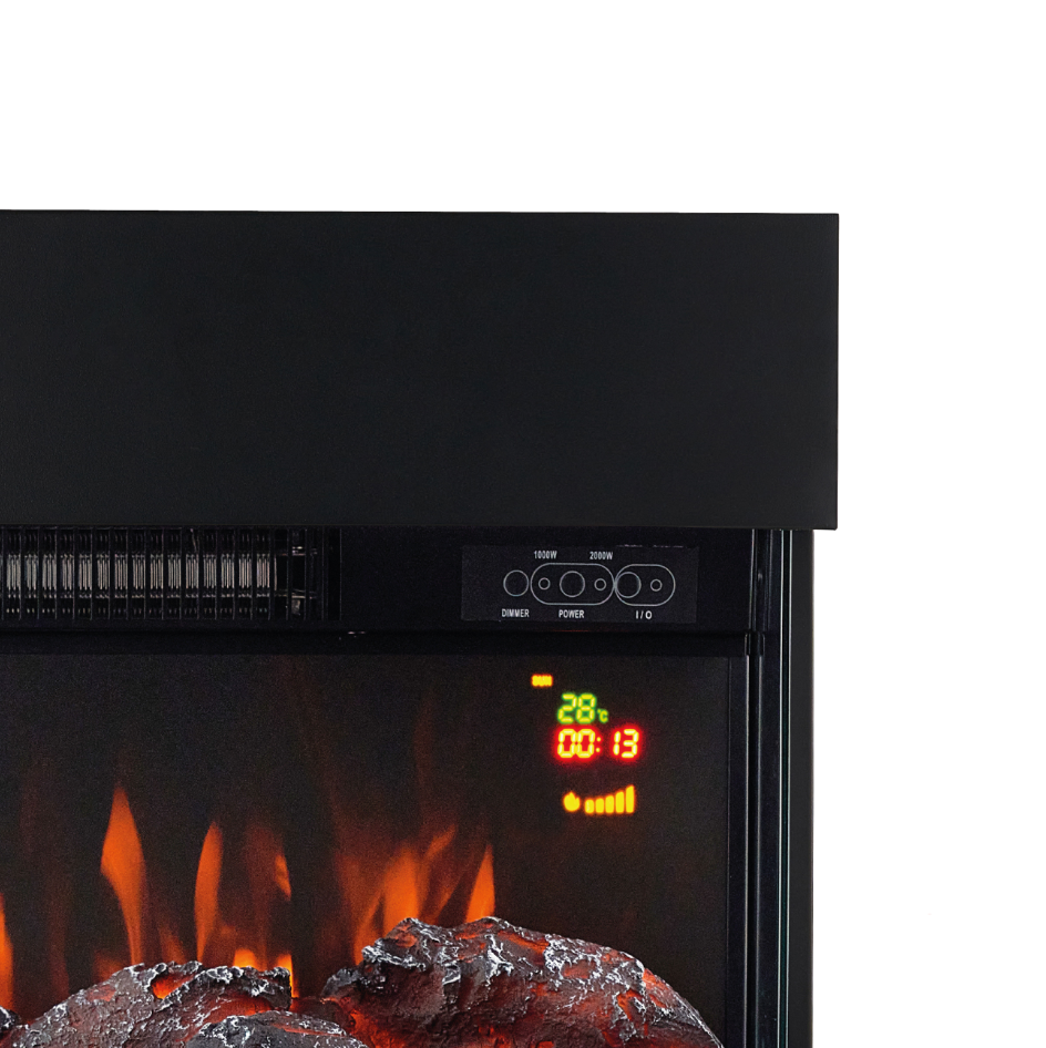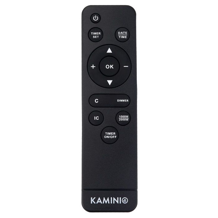 La dotazione dei camini elettrici KAMINIO non lascia nulla a desiderare. Un termostato garantisce temperature predefinite costanti, che possono essere adattate a orari di riscaldamento individuali tramite un timer. Il controllo avviene direttamente tramite il pannello di controllo sul dispositivo o il telecomando in dotazione.