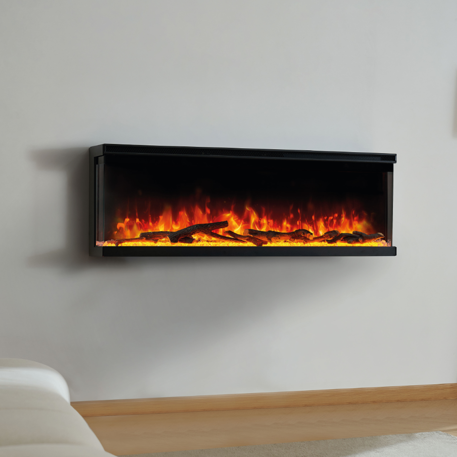 Camino elettrico LEA - Caminetto 3-in-1 con vista panoramica, riscaldamento, effetto fiamma 3D, 12 colori di fiamma, telecomando - 42 pollici