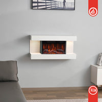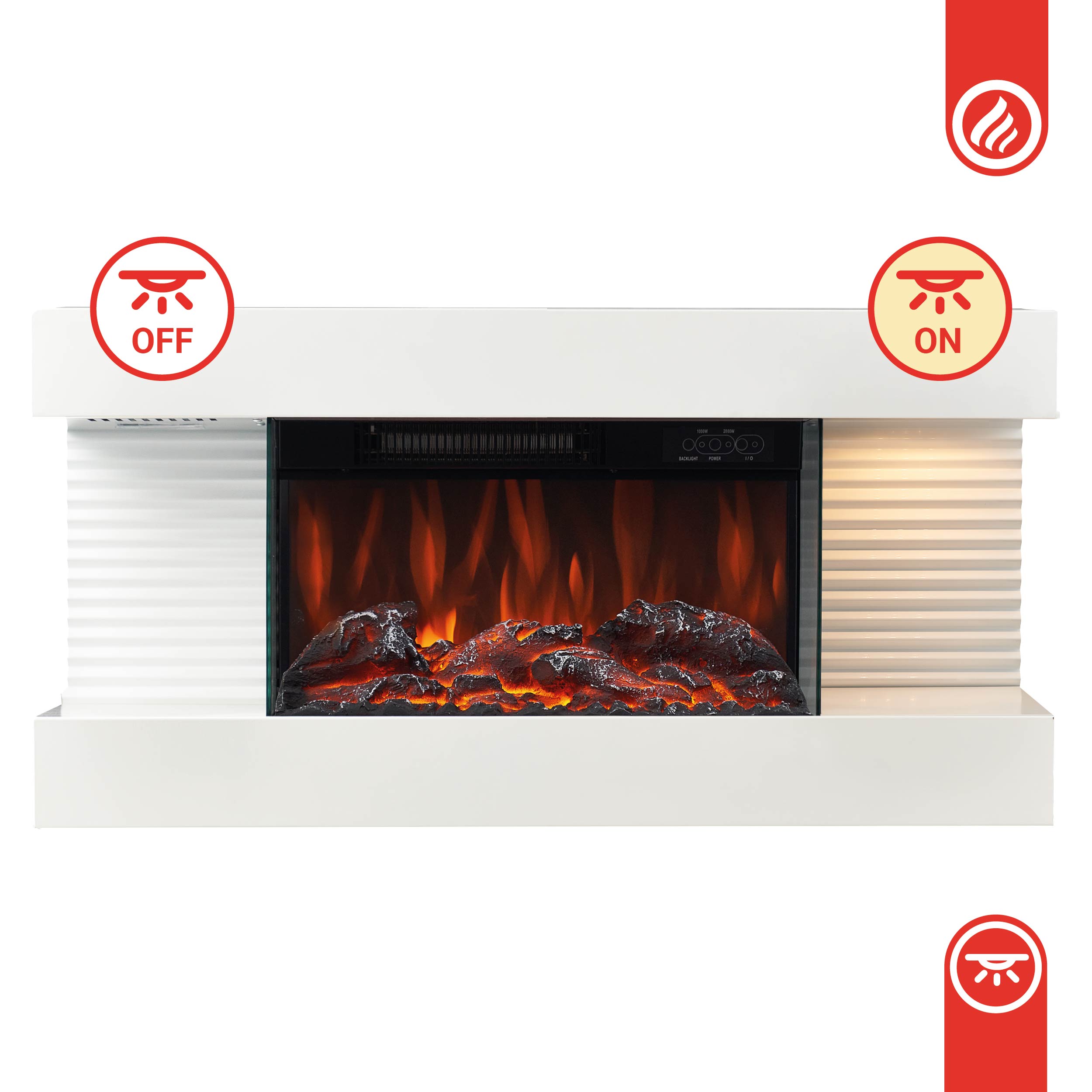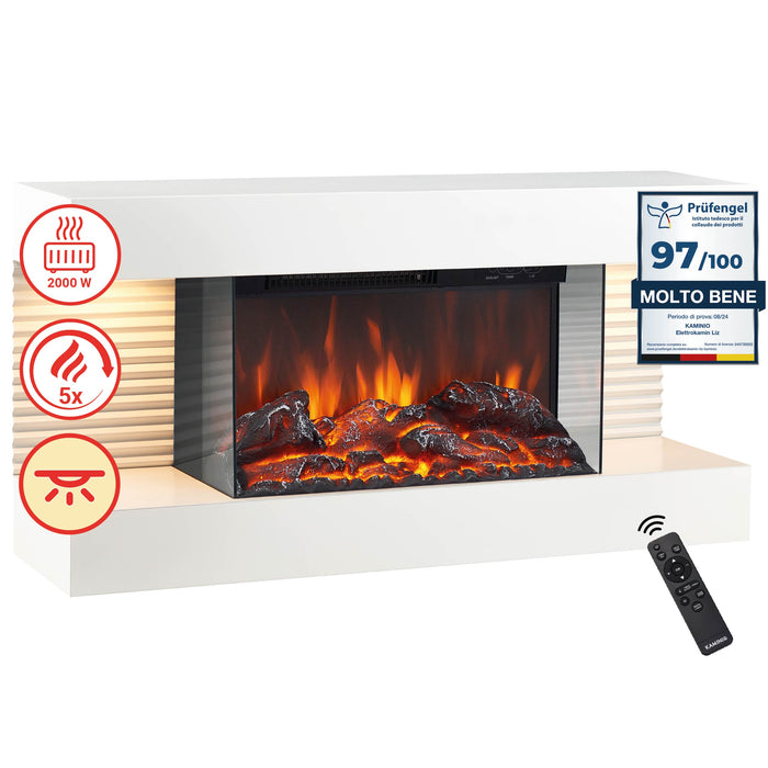 Camino elettrico LIZ - Caminetto elettrico da parete con riscaldamento, effetto fiamma 3D, luce ambiente a LED, telecomando - Bianco