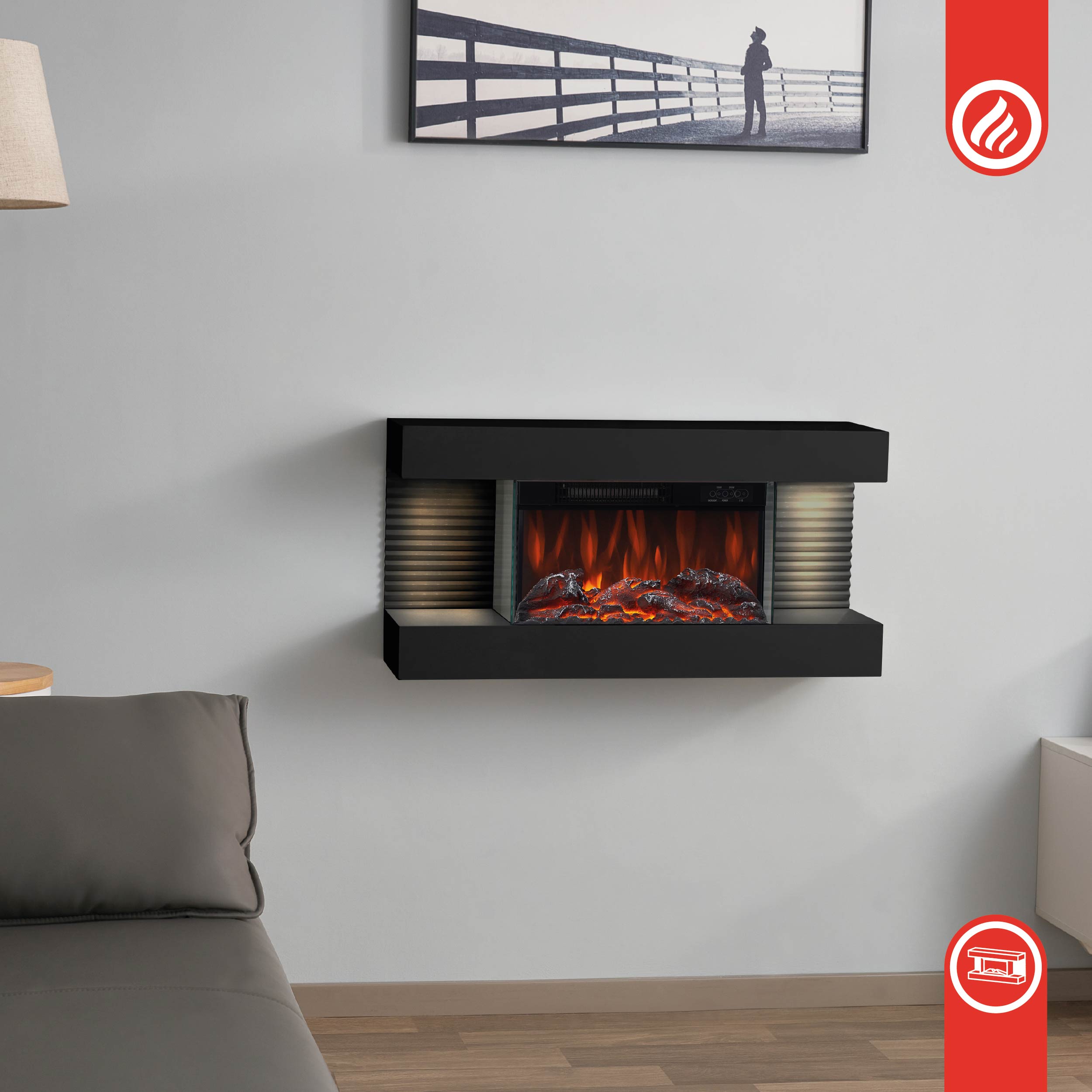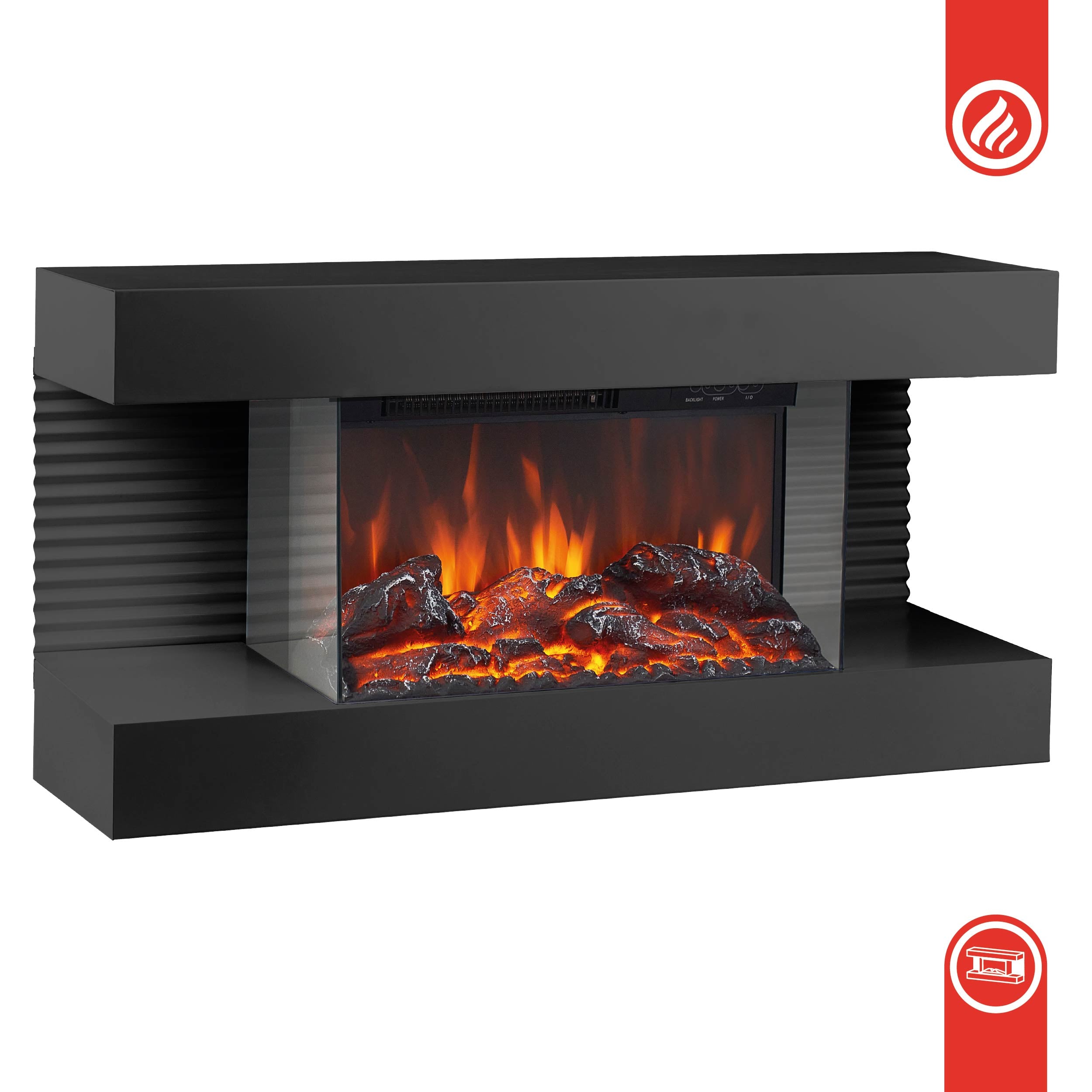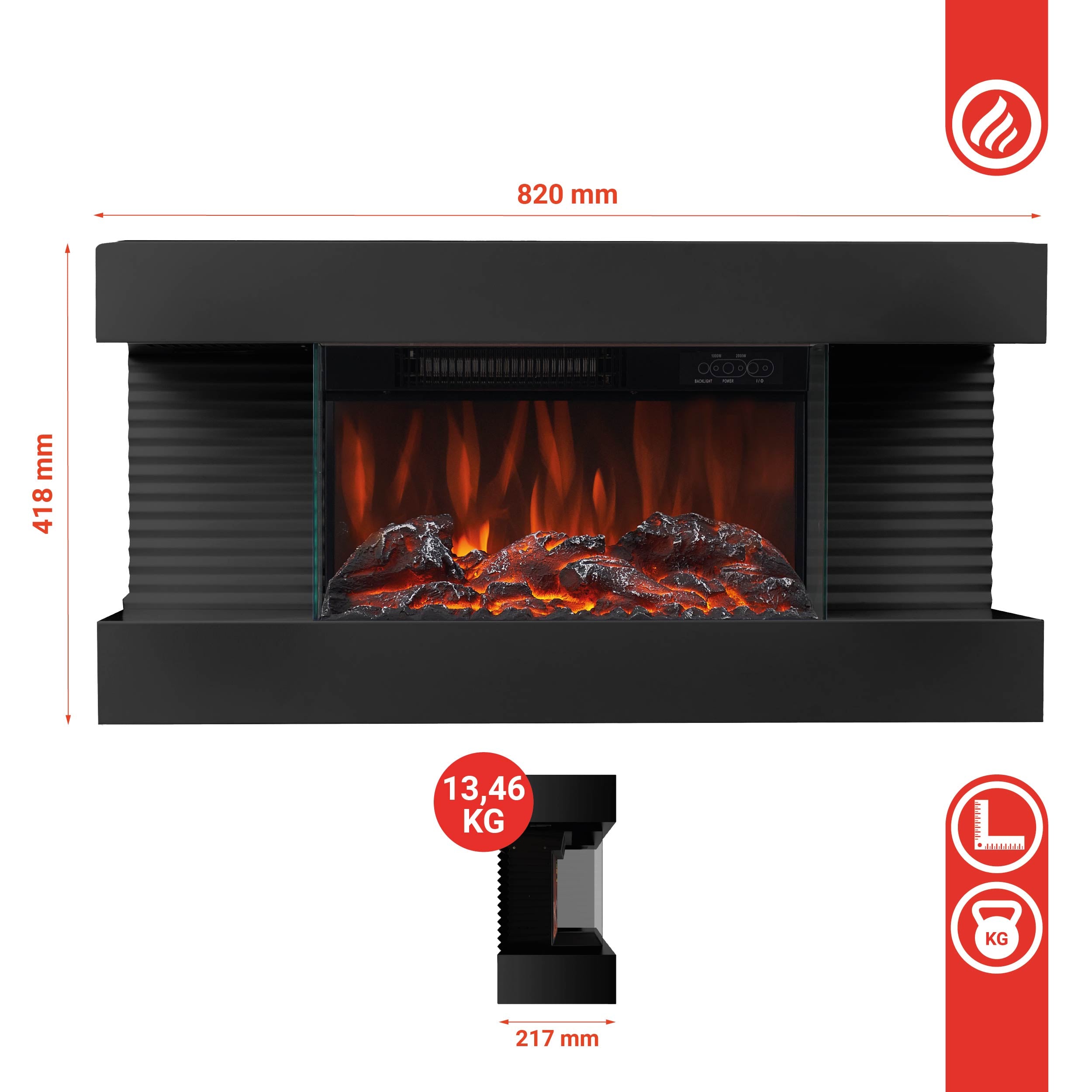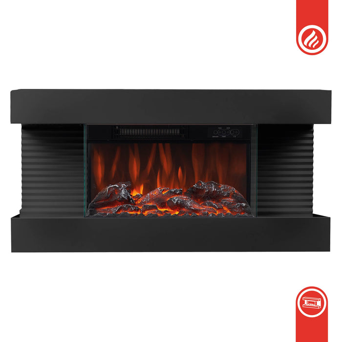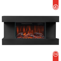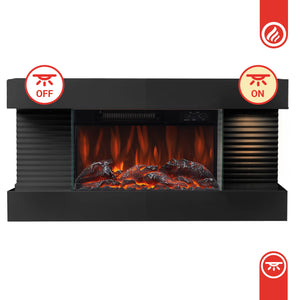 Camino elettrico LIZ - Caminetto elettrico da parete con riscaldamento, effetto fiamma 3D, luce ambiente a LED, telecomando - Nero