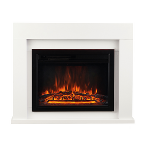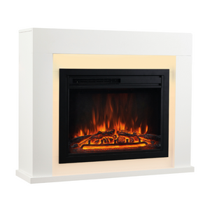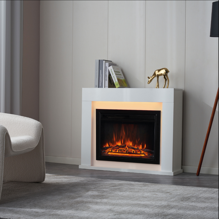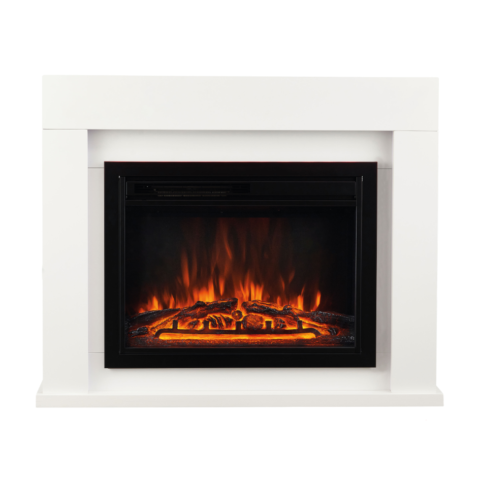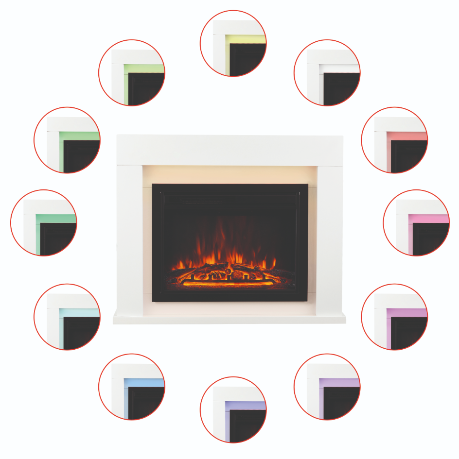 Camino elettrico MATTI - Caminetto da pavimento con riscaldamento, effetto fiamma 3D, luce ambiente a LED, telecomando - Bianco