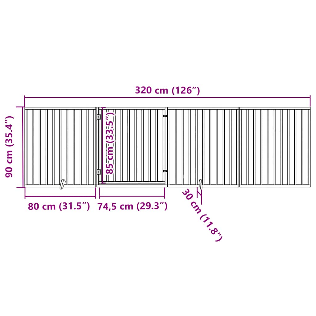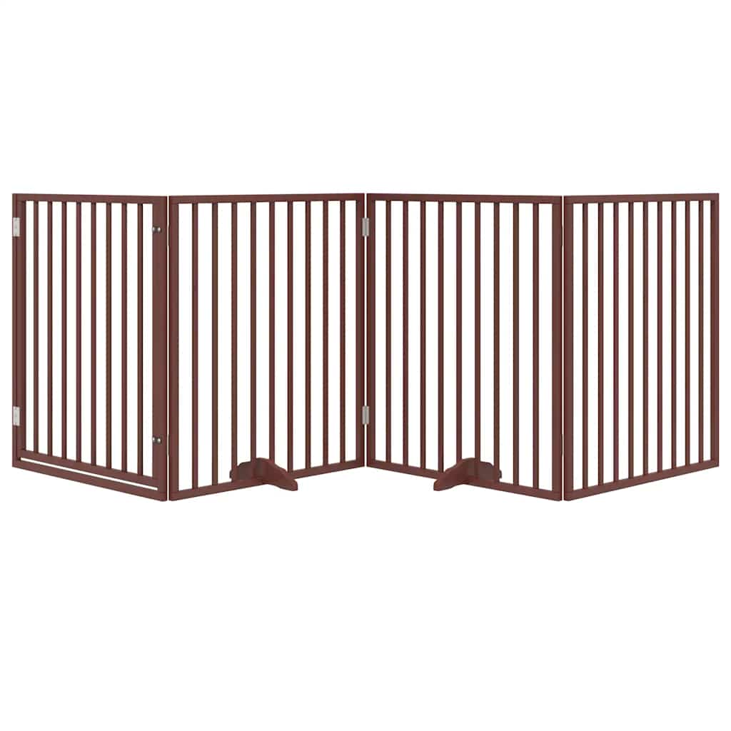 Cancelletto per cani con porta pieghevole 4 pannelli marrone 320 cm in legno di pioppo 352203