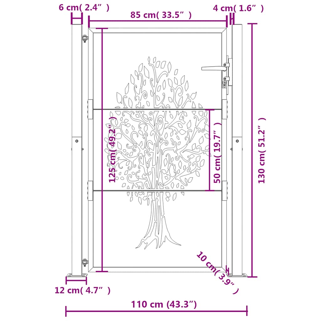 Cancello da giardino 100x125 cm in acciaio Corten con design ad albero 153162