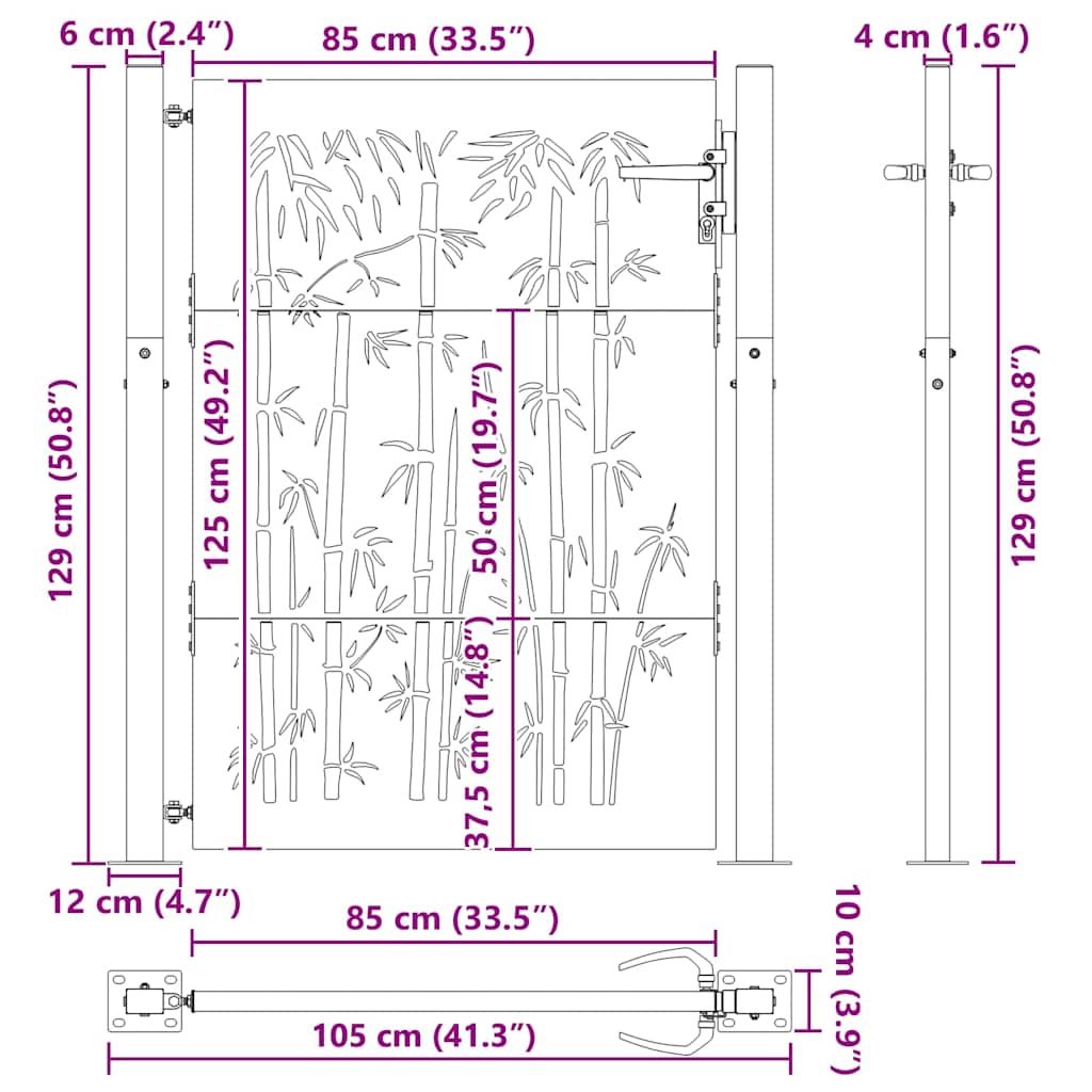 Cancello da giardino 100x125 cm in acciaio Corten e design in bambù 153240