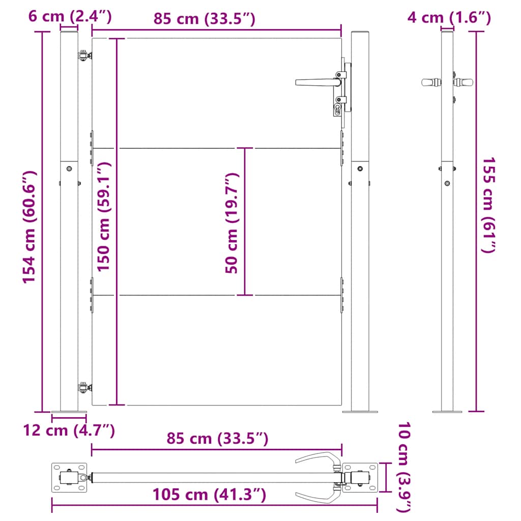 - Dimensioni pannello cancello: 85 x 150 cm (L x A)