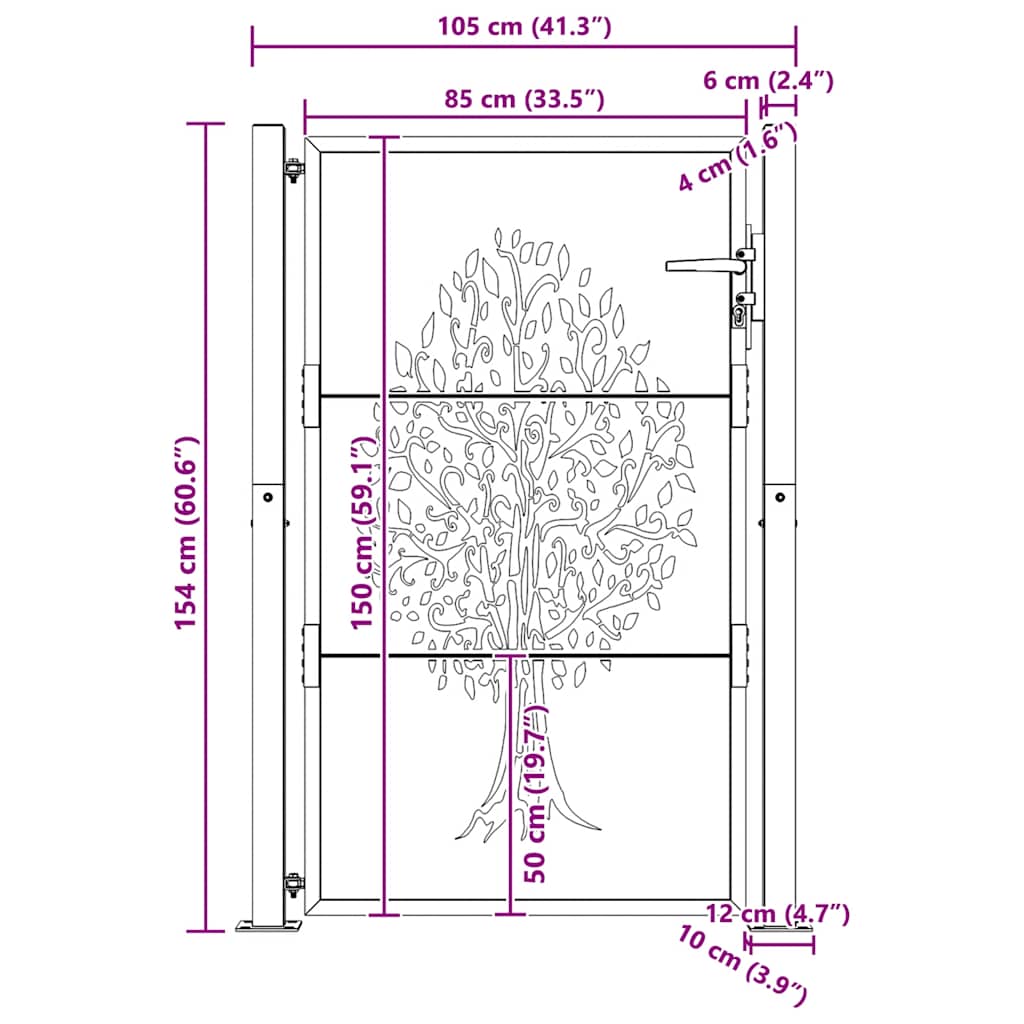 Cancello da giardino 100x150 cm in acciaio Corten con design ad albero 153163