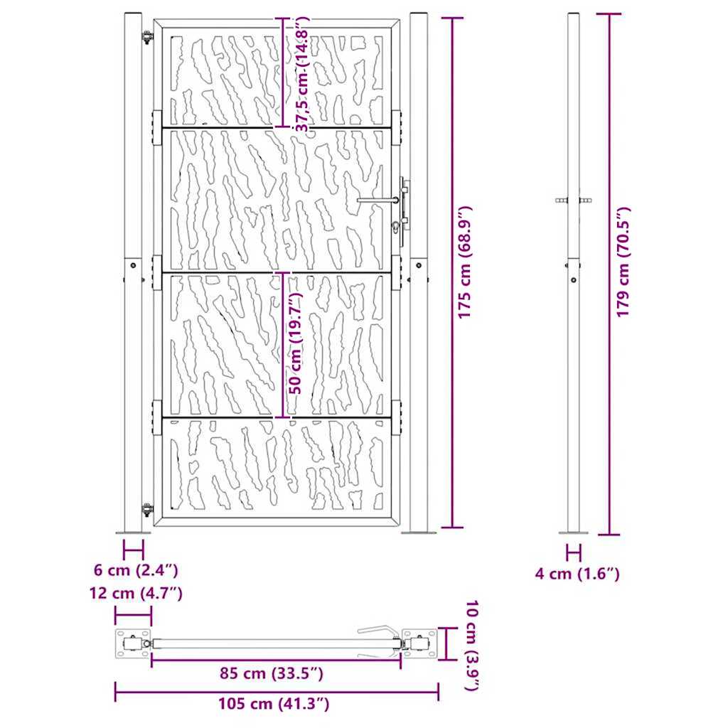 Cancello da giardino 100x175 cm in acciaio corten con design a traccia 4100987
