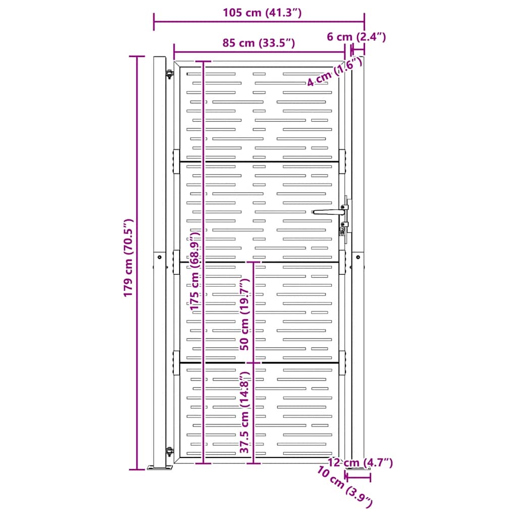 - Dimensioni pannello cancello: 85 x 175 cm (L x A)
