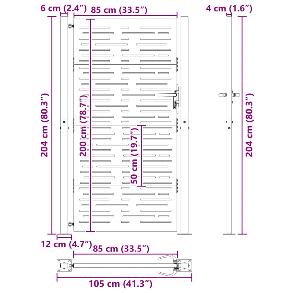 Cancello da giardino 100x200 cm in acciaio Corten design quadrato 153255