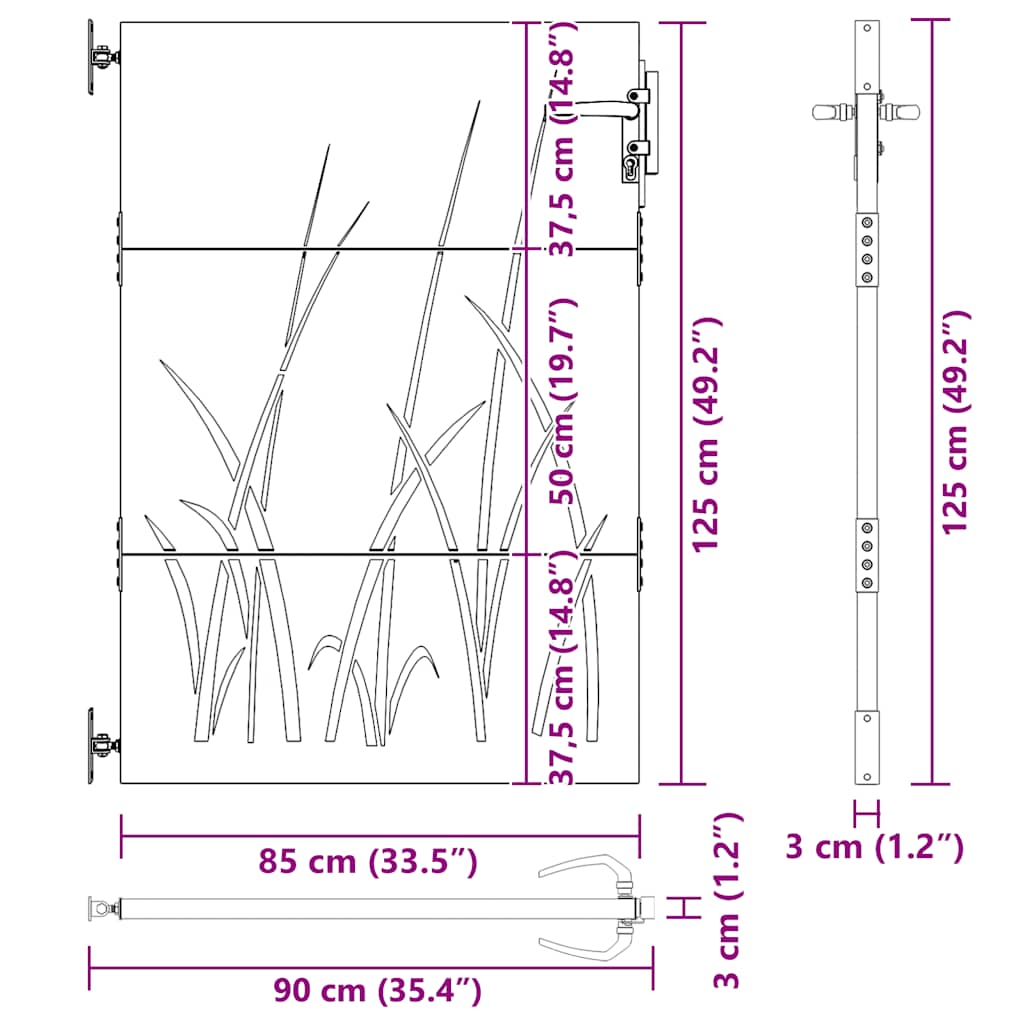 Cancello da giardino 85x125 cm in acciaio Corten con design erba 153222