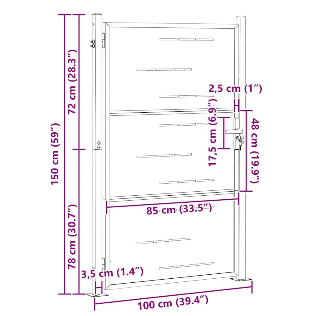 - Durabilità del materiale: Questo cancello da giardino è in acciaio inox di alta qualità, quindi resiste a lungo anche in condizioni meteo difficili. La finitura è gradevole anche esteticamente e non si danneggia stagione dopo stagione.