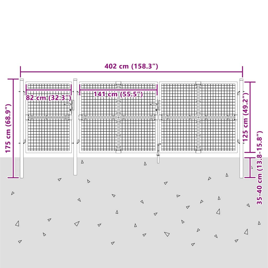 Cancello da Giardino in Rete Verde 400x125 cm in Acciaio Zincato 154537