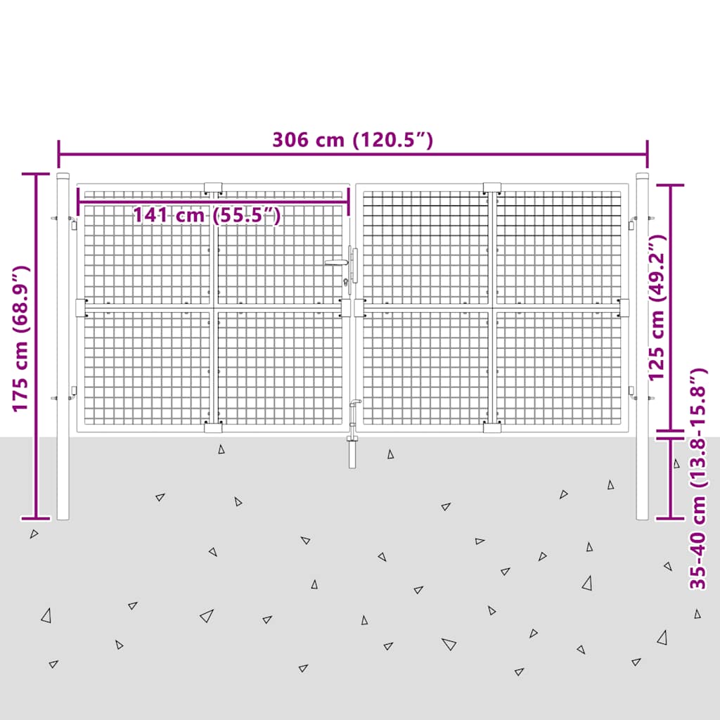 Cancello da Giardino in Rete Argento 300x125 cm in Acciaio Zincato 154531