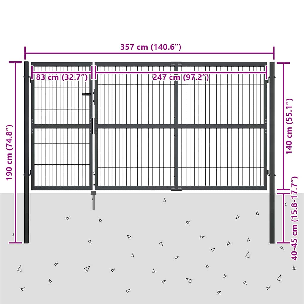 Cancello di Recinzione con Pali in Acciaio 350x140 cm Antracite 144401