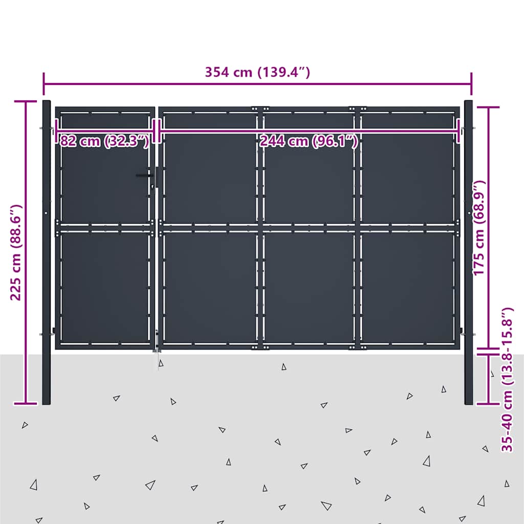Cancello da Giardino in Acciaio 350x175 cm Antracite 144539