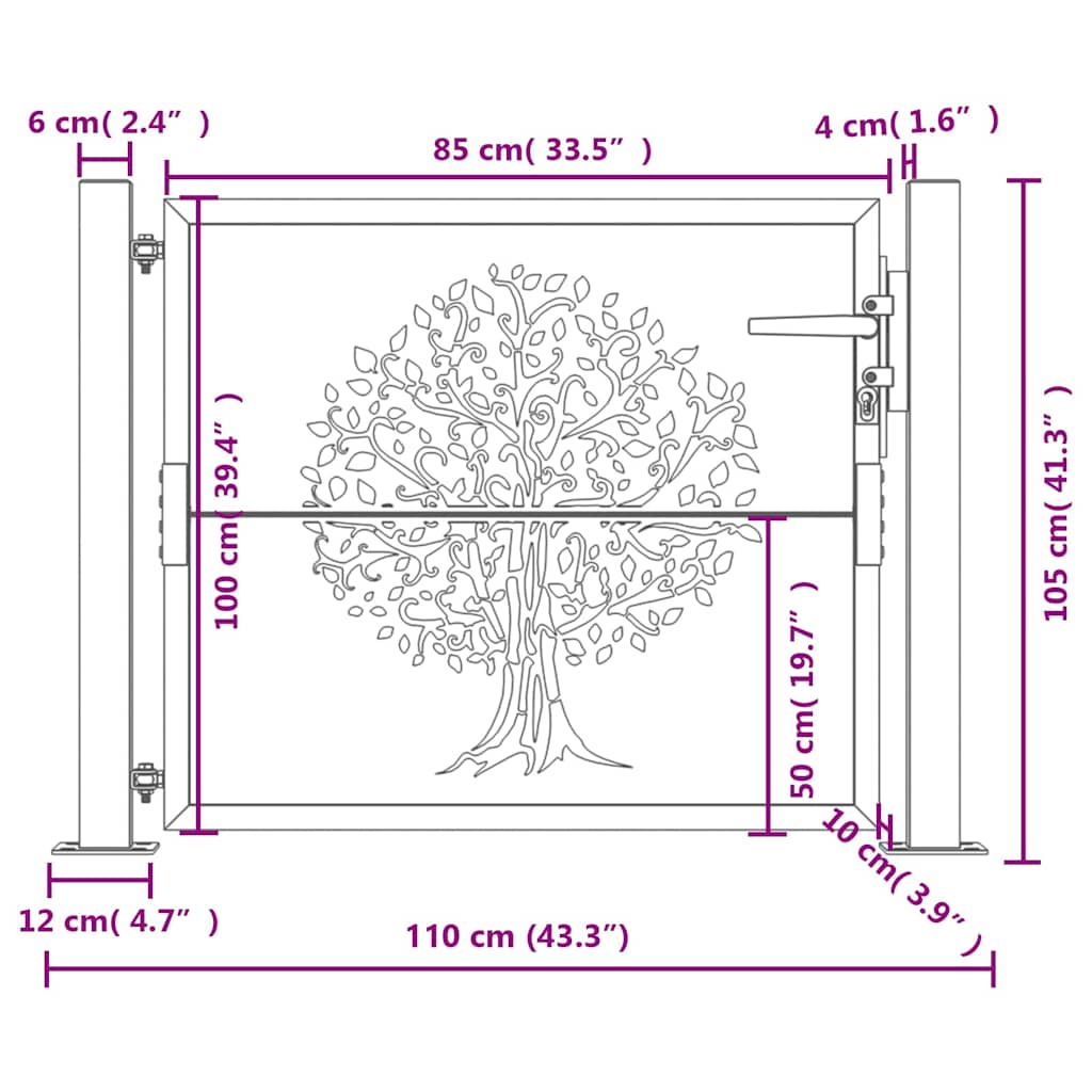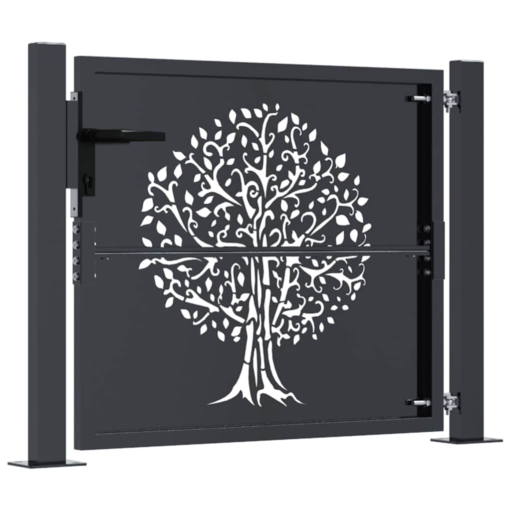 Cancello da giardino antracite 100x100 cm in acciaio con design ad albero 153155