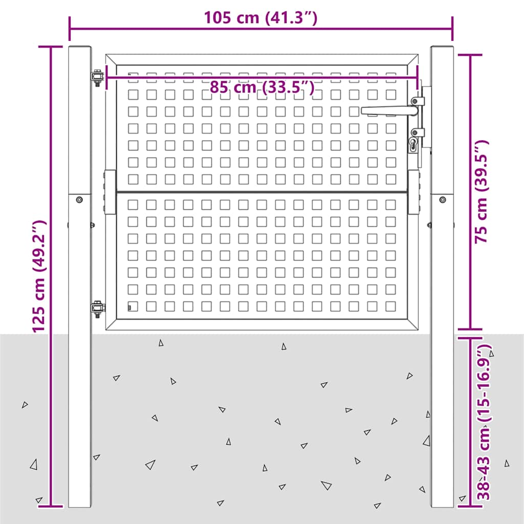 Cancello da Giardino Antracite 100x75 cm in Acciaio 154559