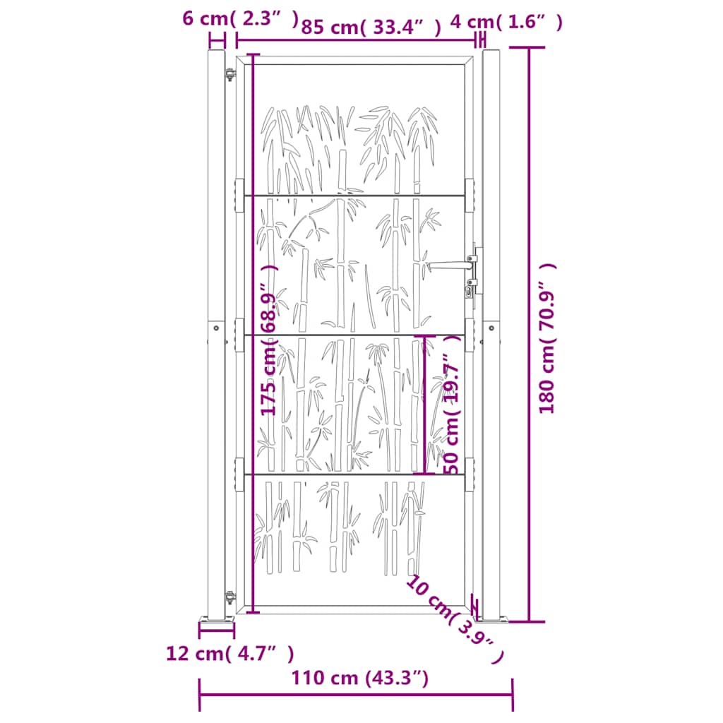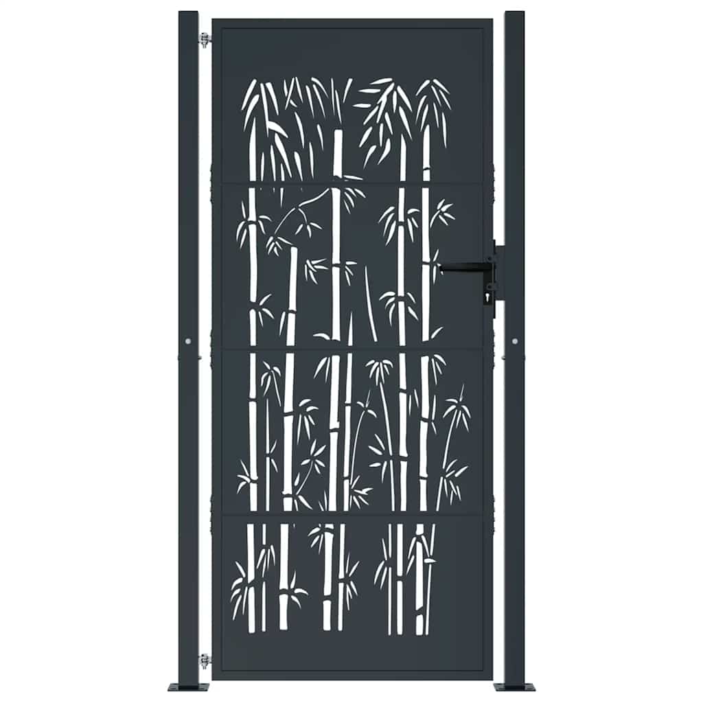 Cancello da giardino antracite 100x175 cm in acciaio e bambù 153182