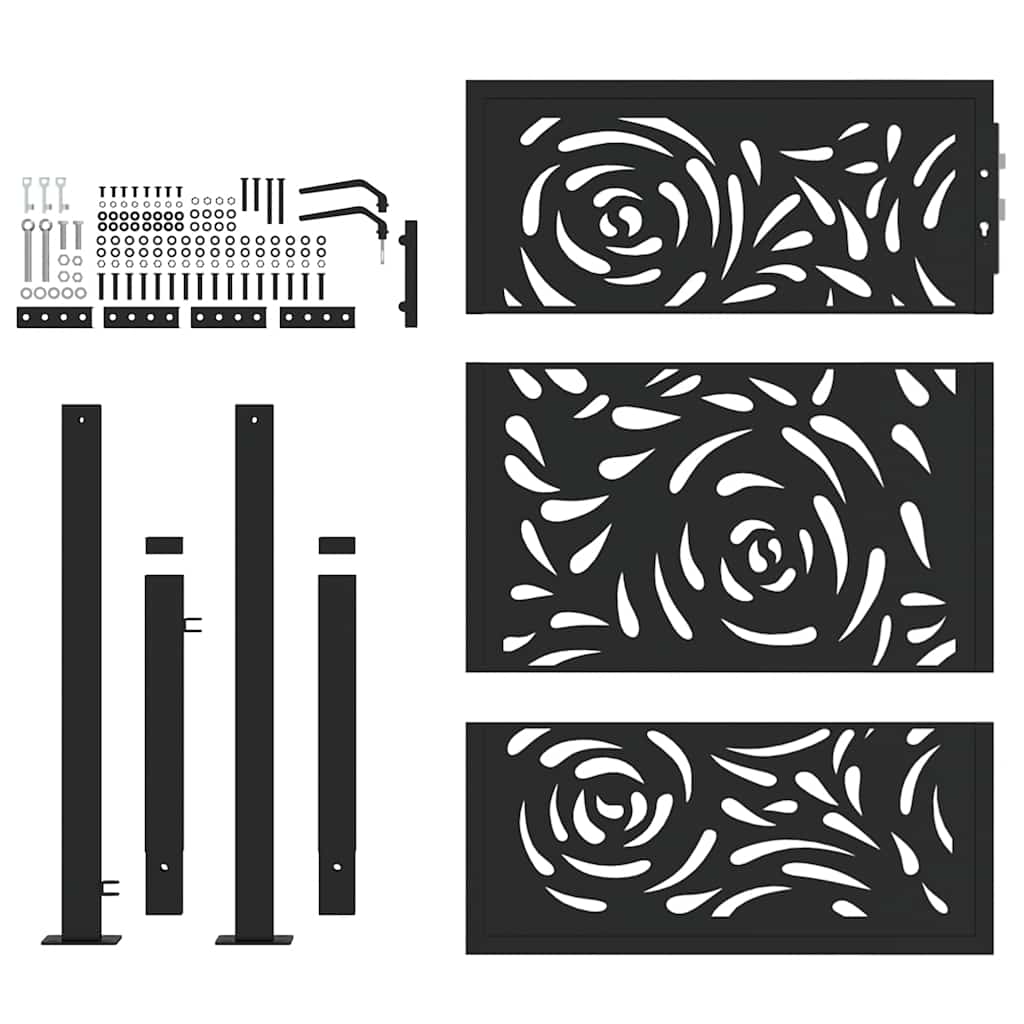 Cancello da giardino nero 100x125 cm in acciaio con design a fiamma 4100990