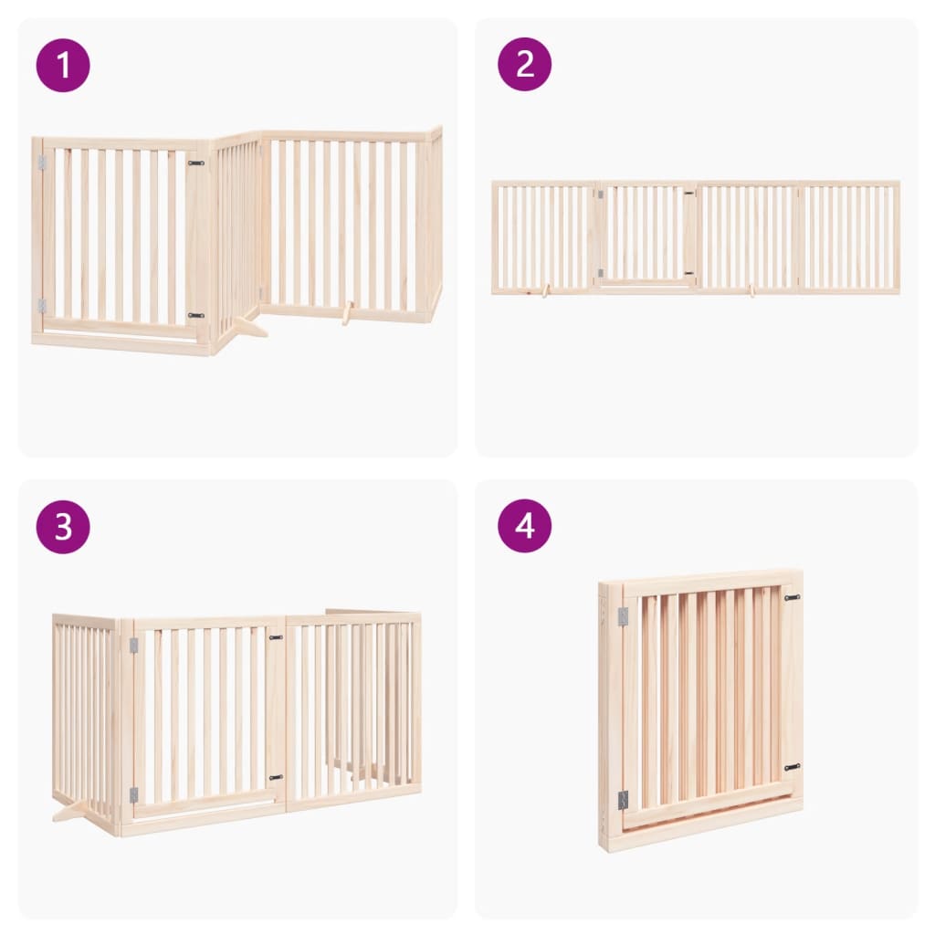 Cancello per Cani con Porta Pieghevole 4 Pannelli 320 cm Pioppo 352243